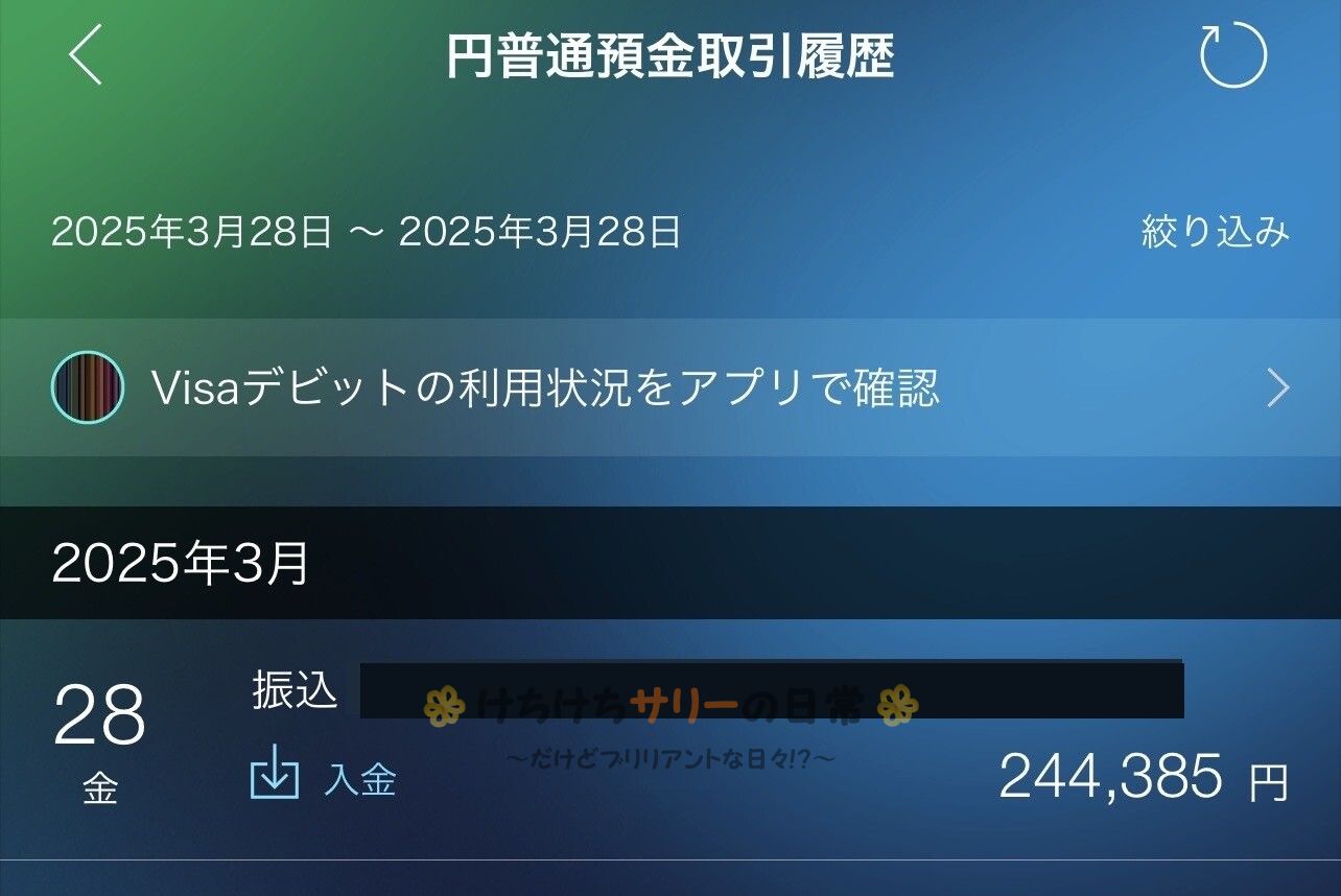 給料は1ヵ月遅れで入ってくるので、こちらは2025年2月1日~2月28日の間に働いた分の給料だよ。