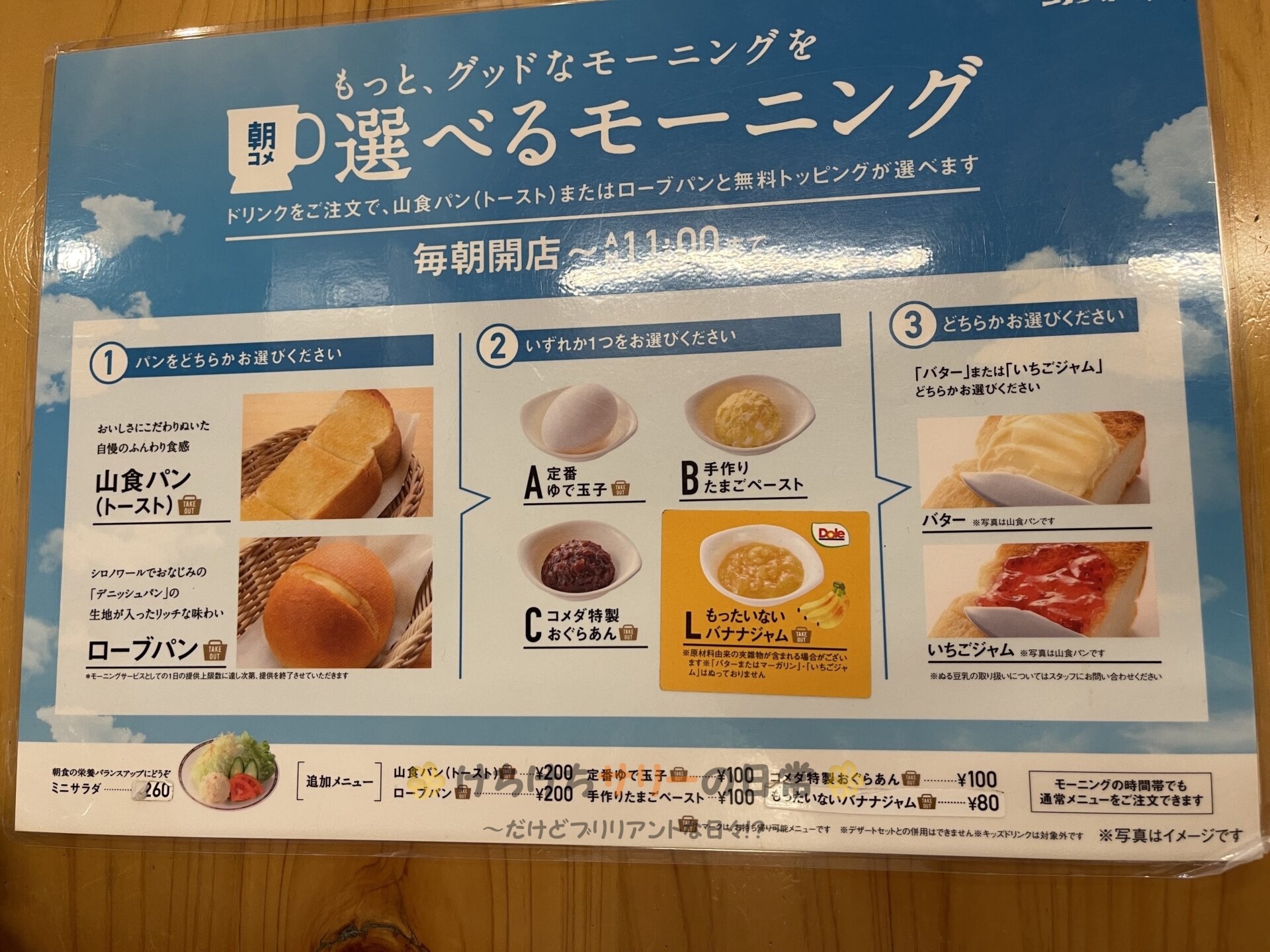 コメダ珈琲って11時までに入店すれば無料でモーニングが付いてくるから、絶対この時間に来るのがお得だよね😁
