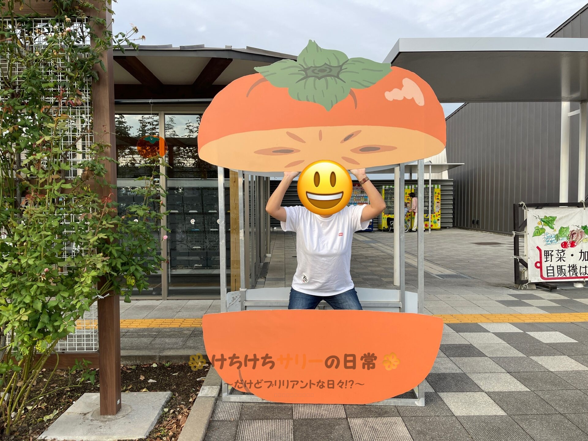 富有柿のオブジェがあったから、サザエさんポーズで記念撮影📸
