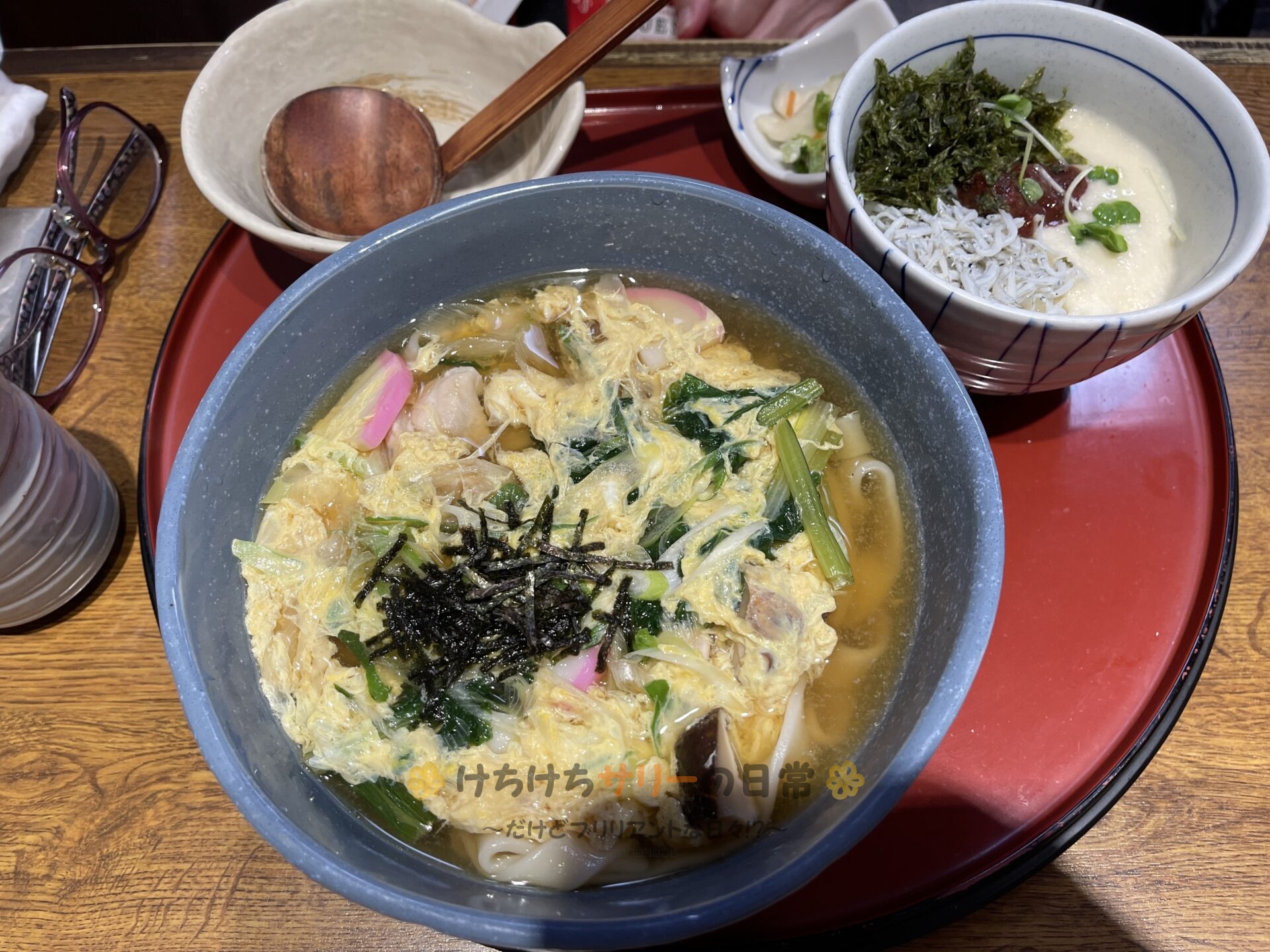サリーパパは「五目きしめん:1,020円」を単品で、サリーママは「五目きしめん:1,020円」+「しらすミニ丼:530円」にしてたよ。