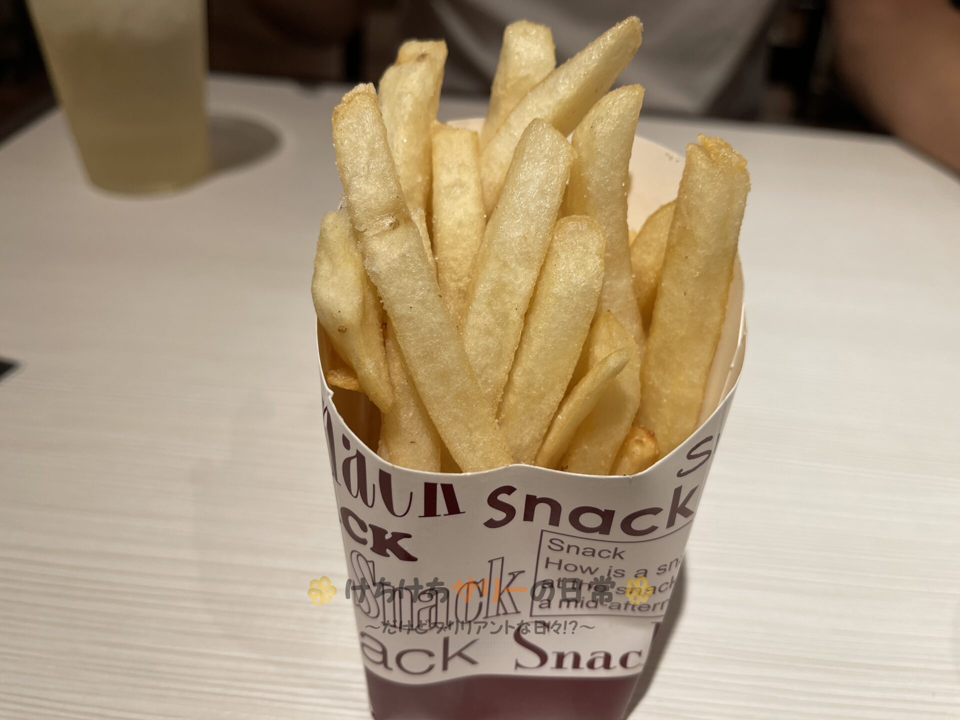 フライドポテトは冷めるとまずくなっちゃうからその場で食べて、ホットドッグは持ち帰りにしてもらったよ‼