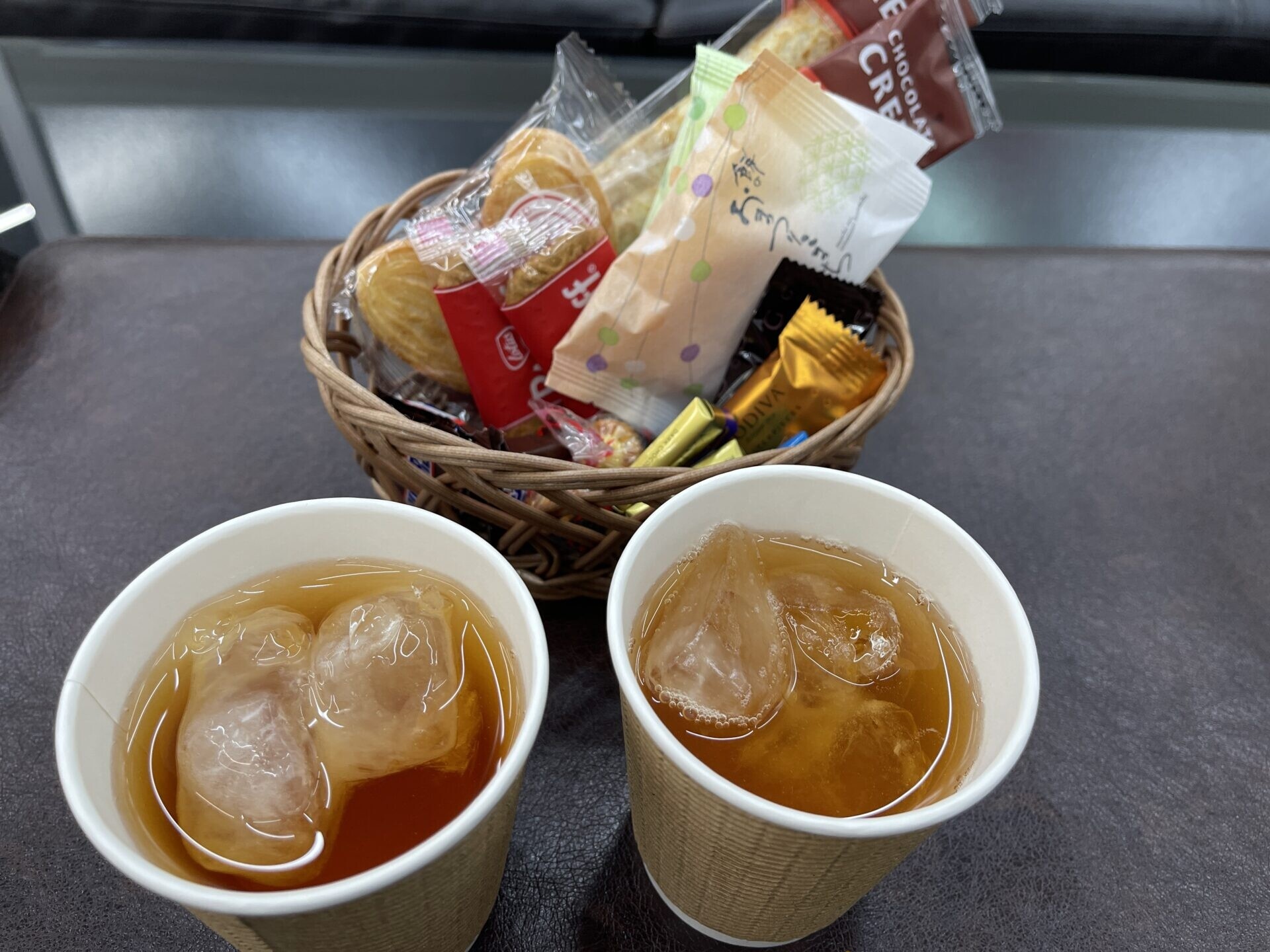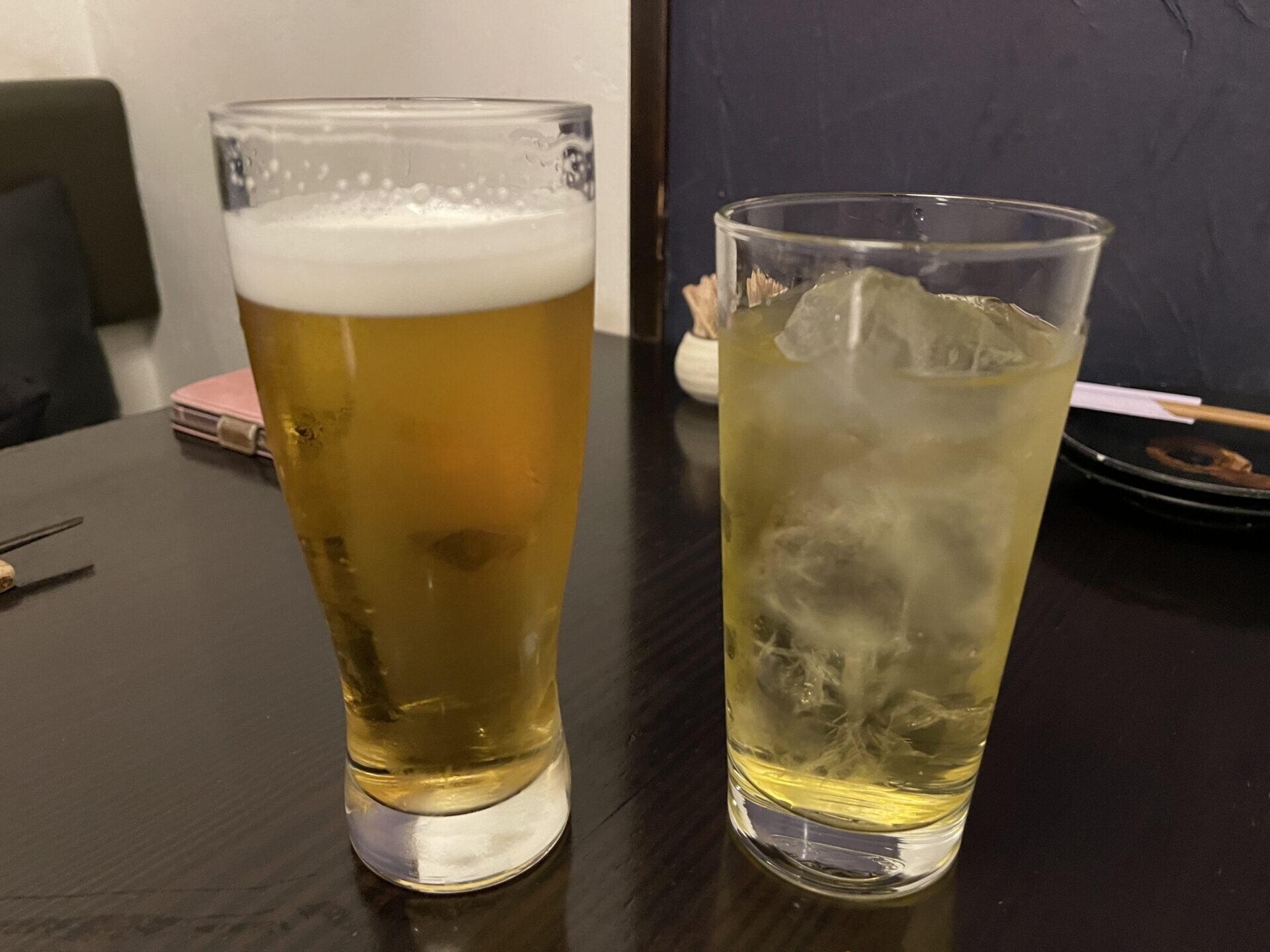 こちらが最初のドリンク。 先輩はビール、サリーはジャスミンティーを注文👍