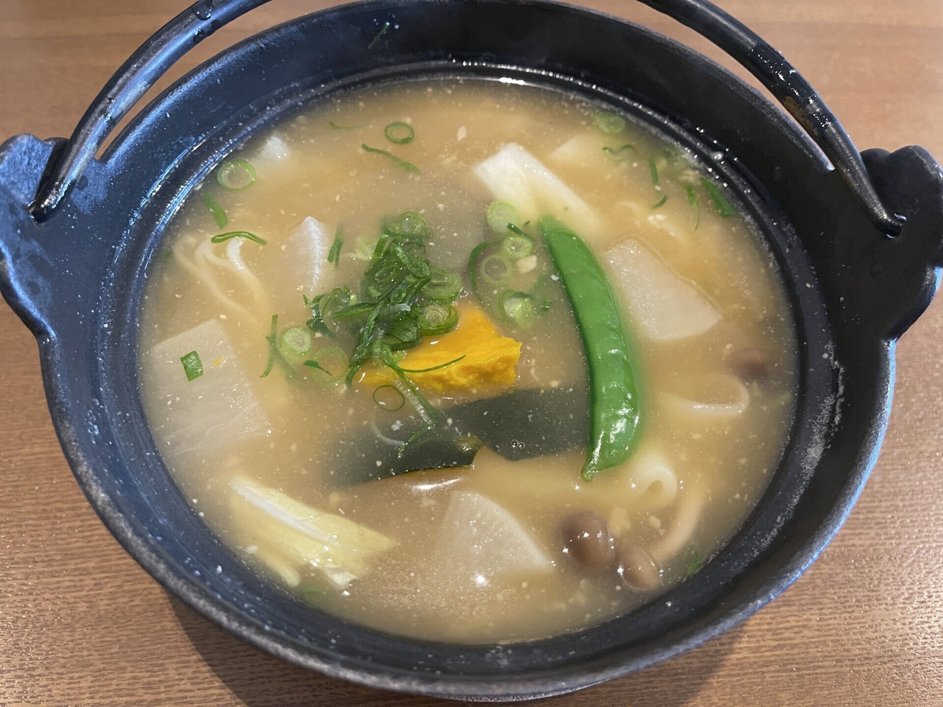 サリーが頼んだのは「ほうとう鍋とり天定食:1,780円」。 ほうとうって野菜がたっぷり入ってるし、麺もきしめんみたいな太麺で大好き😍