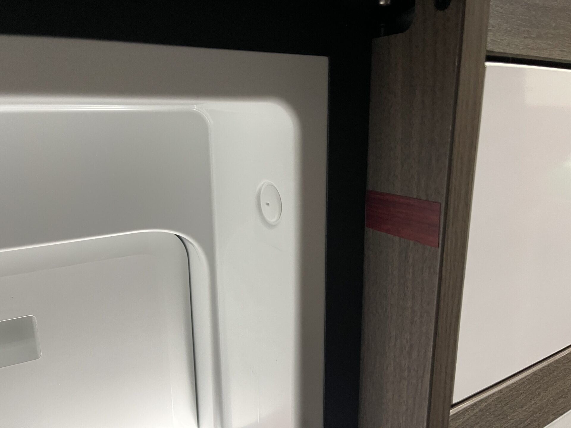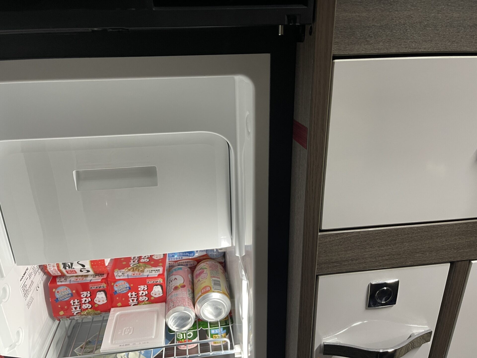 この日の目的は、冷蔵庫の上側側面の補修テープを貼り直してもらう事。 マイペンライ号の冷蔵庫は故障続きで何回も交換してもらってるんだけど、出し入れ作業を繰り返すうちに側面に傷がついちゃったみたいだから傷補修テープを貼ってくれたの。