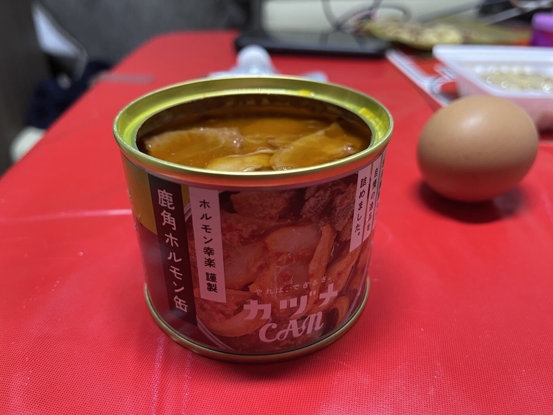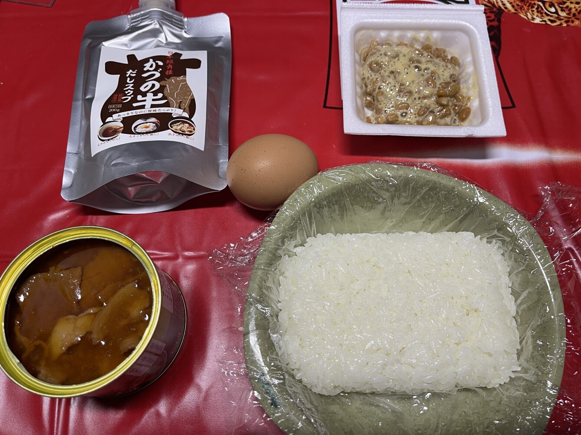 この日は卵かけご飯、納豆、道の駅鹿角から送られて来たホルモンの缶詰を食べたよ。