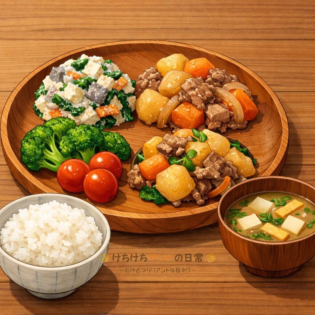 チャッピーにイラスト作成をお願いしたらなぜか皿の上には肉じゃがが2個のってる感じになっちゃったけどイメージ図なので細かい事は気にしない👍 肉じゃがの肉が相変わらず最高級で美味しかったよぉ😋