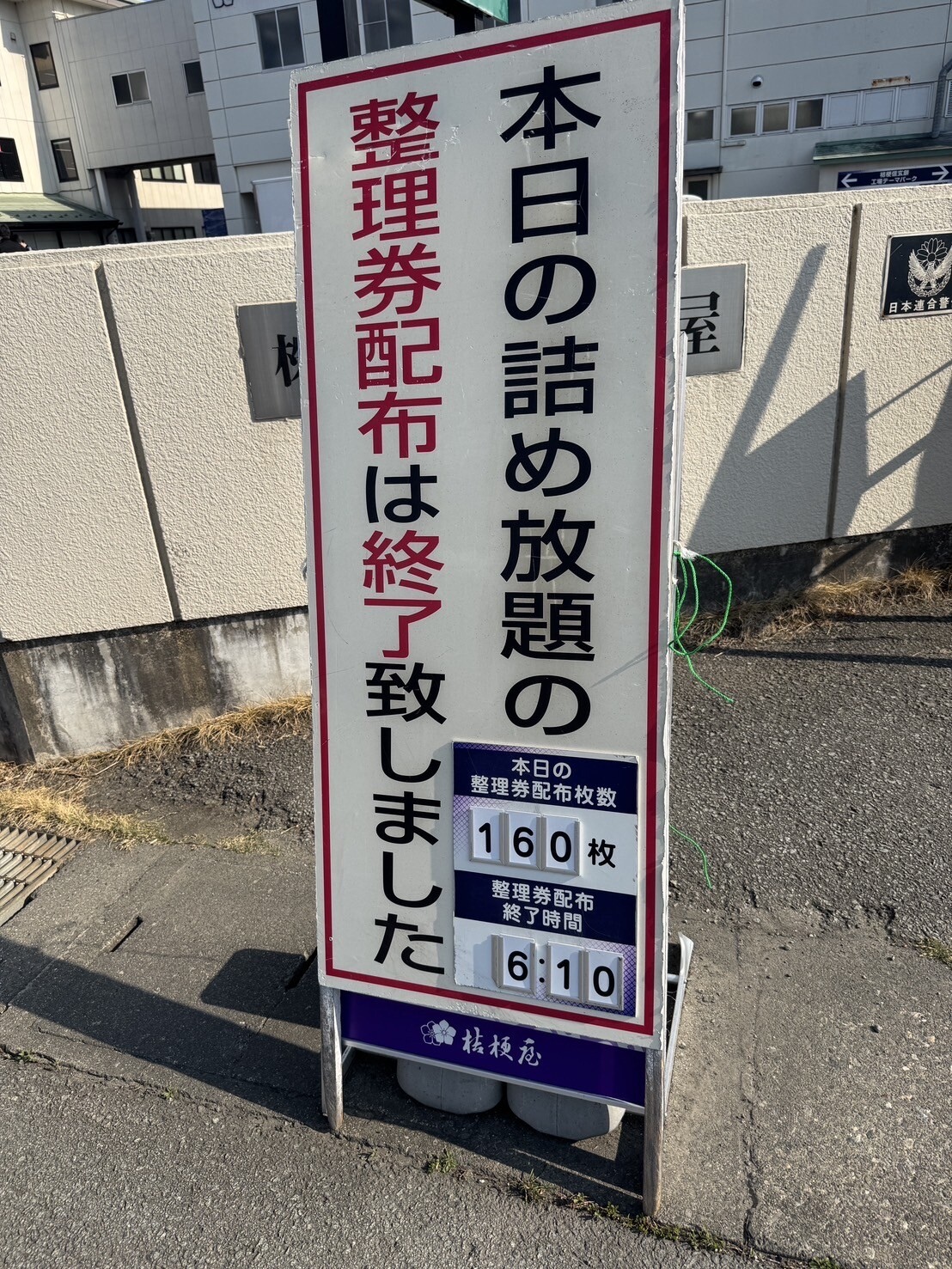 この日の整理券は160枚で6:00に配布開始された整理券は6:10に配布終了したとの事。