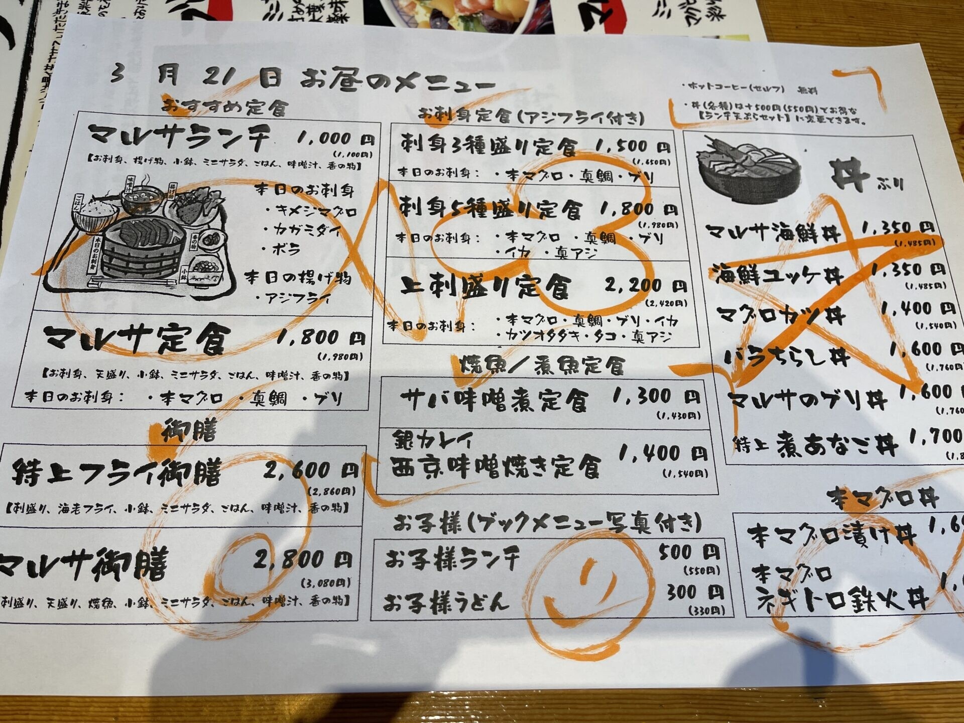 サリーも相方も平日限定のお得な「マルサランチ:1,100円」にしたよ✌️