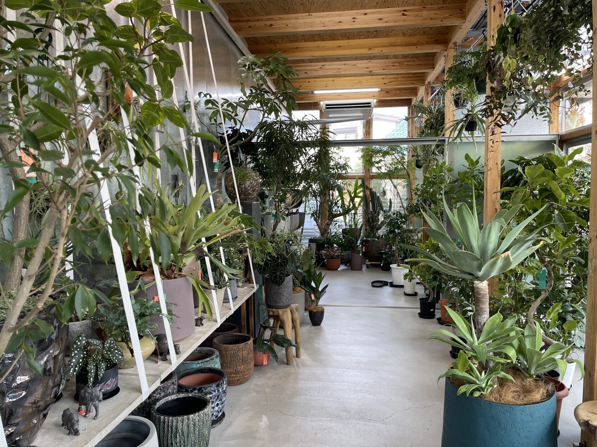 店の外観はこんな感じで、大きな木から観葉植物まで色々な種類の植物が置いてある。