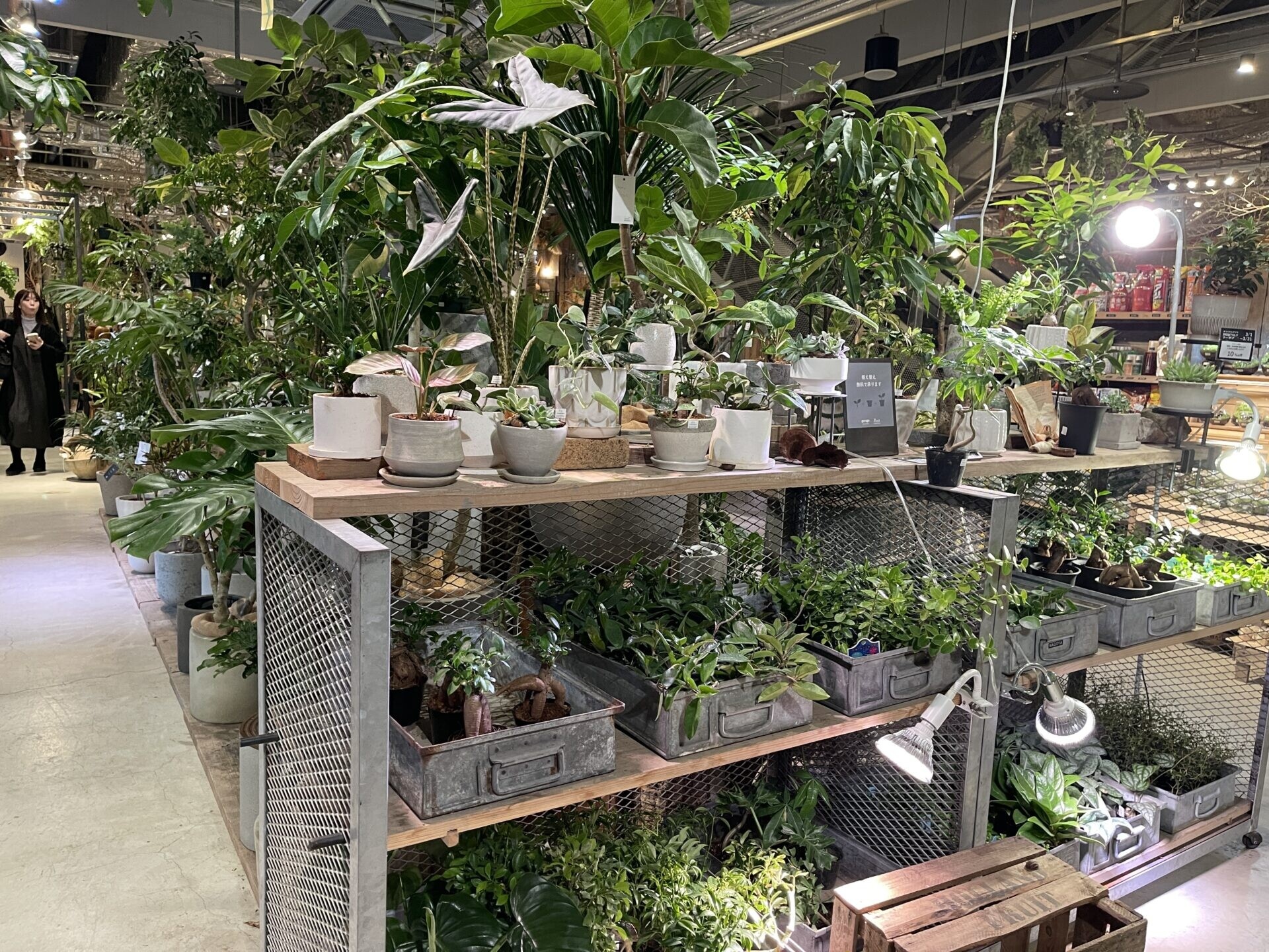 続いて向かったのは名古屋駅南のグローバルゲート内にある「garage NAGOYA」。 お店はジャングルみたいになってて、かなり広い空間に色々な植物が置いてあった。