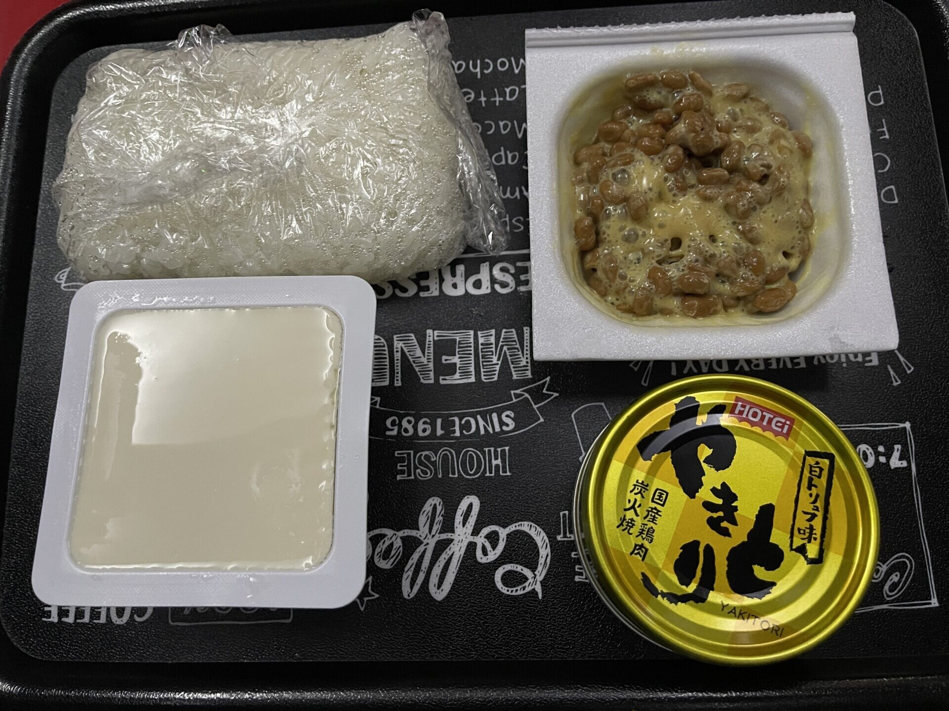 サリー達はサリーママからもらった白いご飯、納豆、冷ややっこ、焼き鳥缶を食べたよ🙂