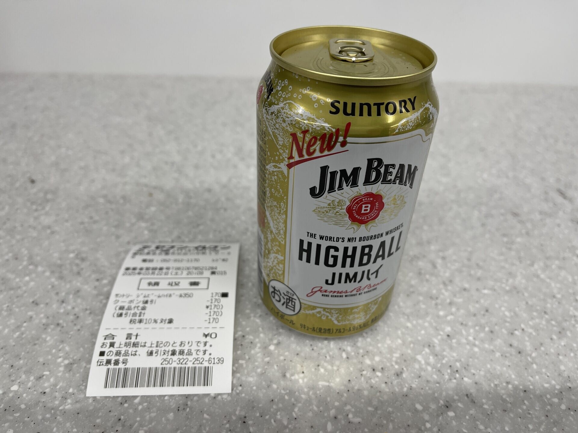 近くのセブンイレブンで「JIM BEAMハイボール:170円」と引き換えたよ🆓