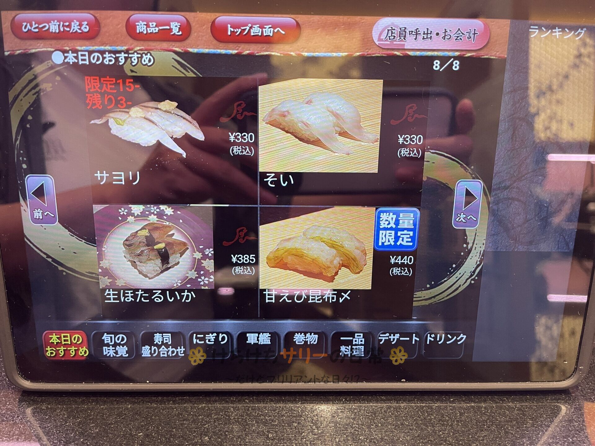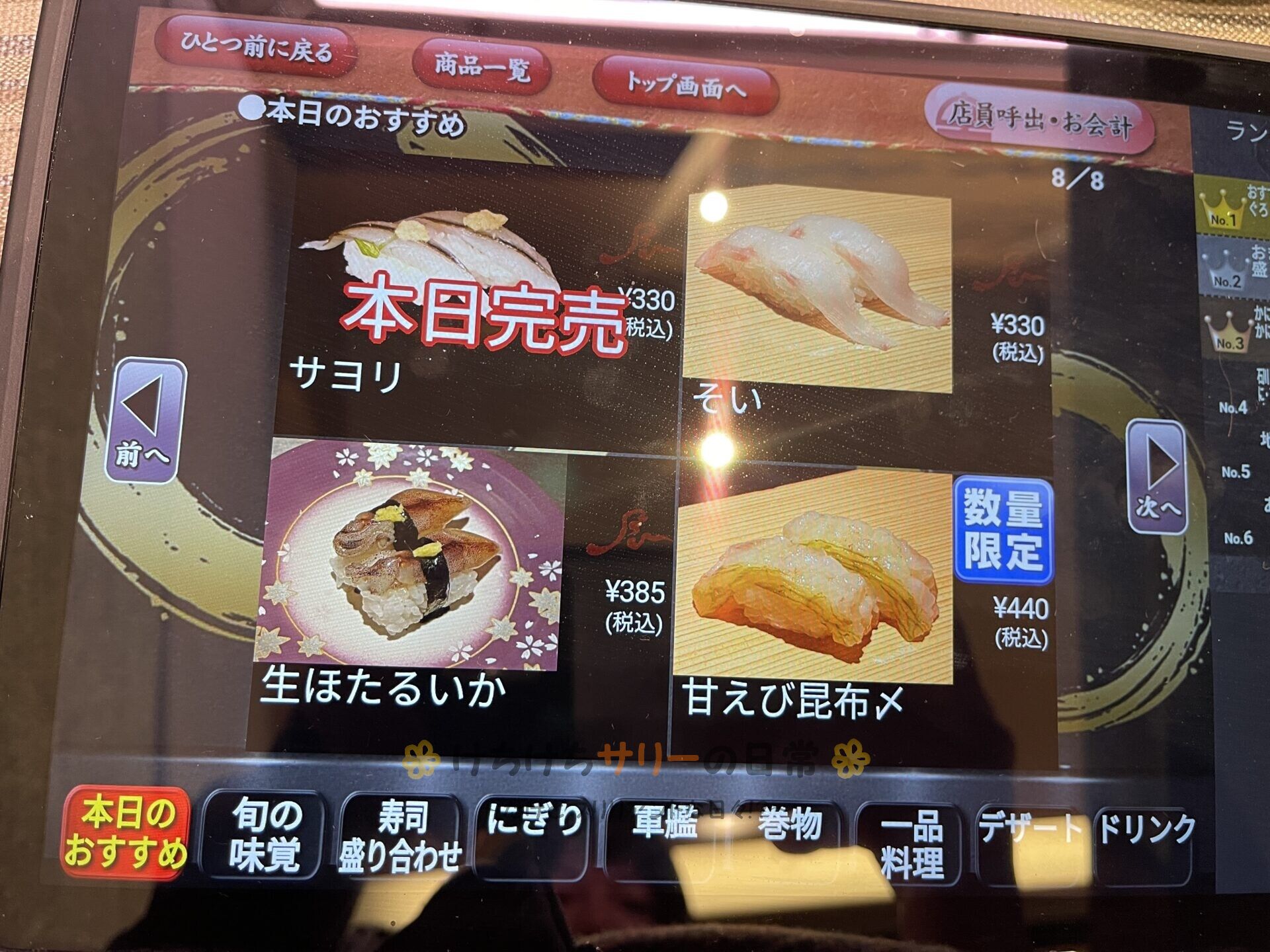 お寿司はこんな感じでタッチパネルで注文するよ👆