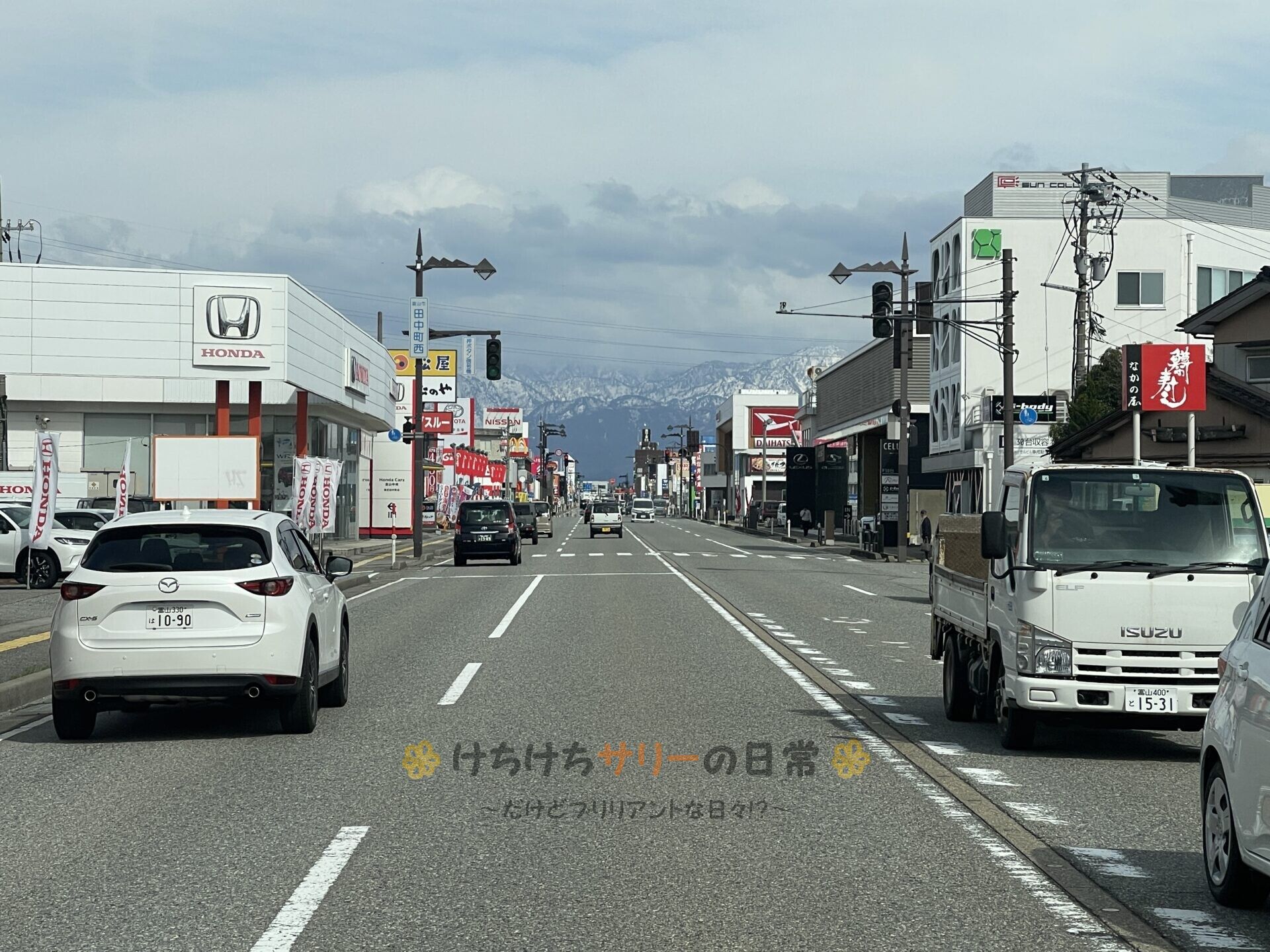 富山市内を走っていると立山連峰が見えてきた⛰️