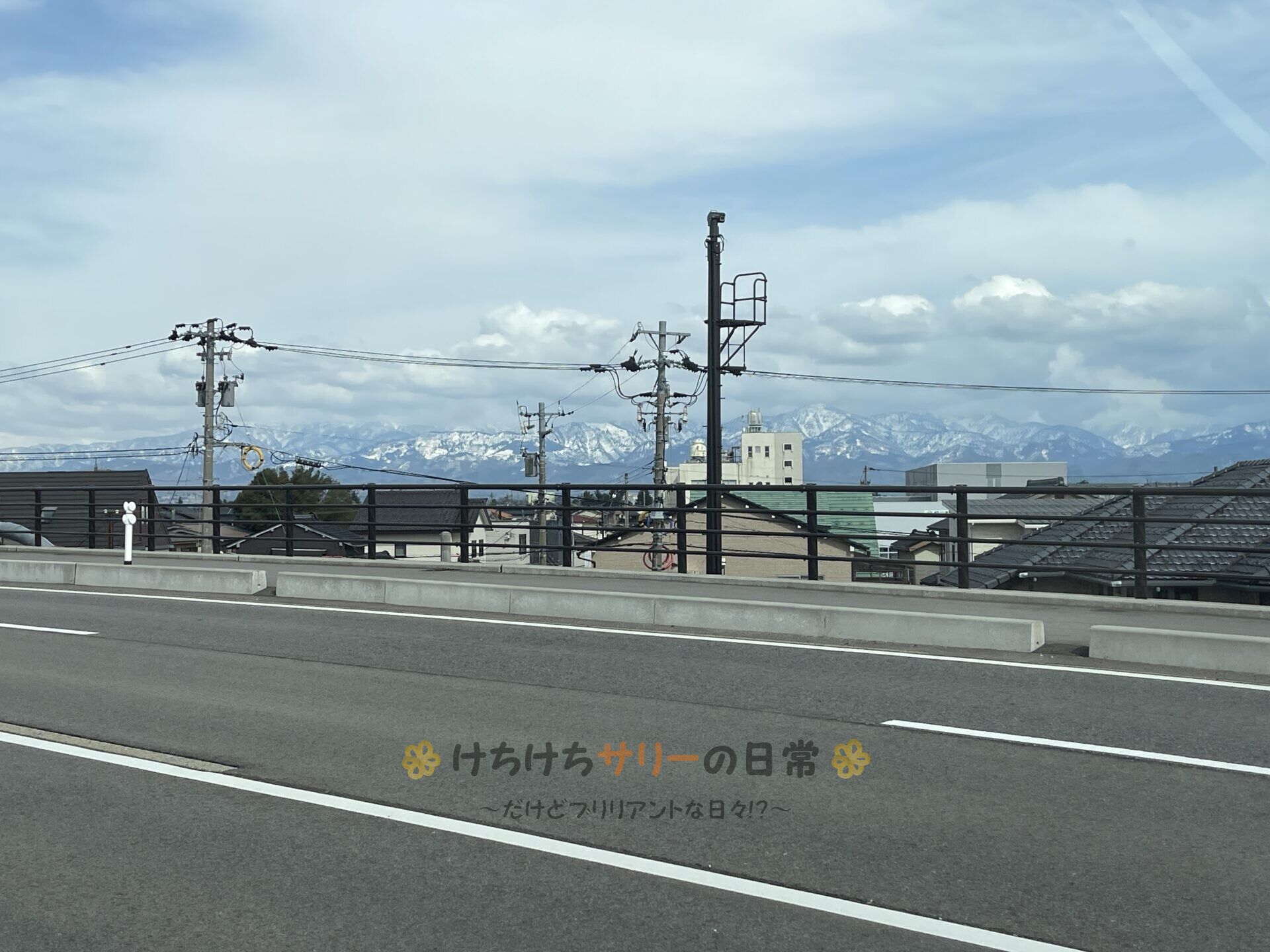 富山市内を離れて少し田舎の方にやって来たら、さらにキレイに見えてきた立山連峰✨