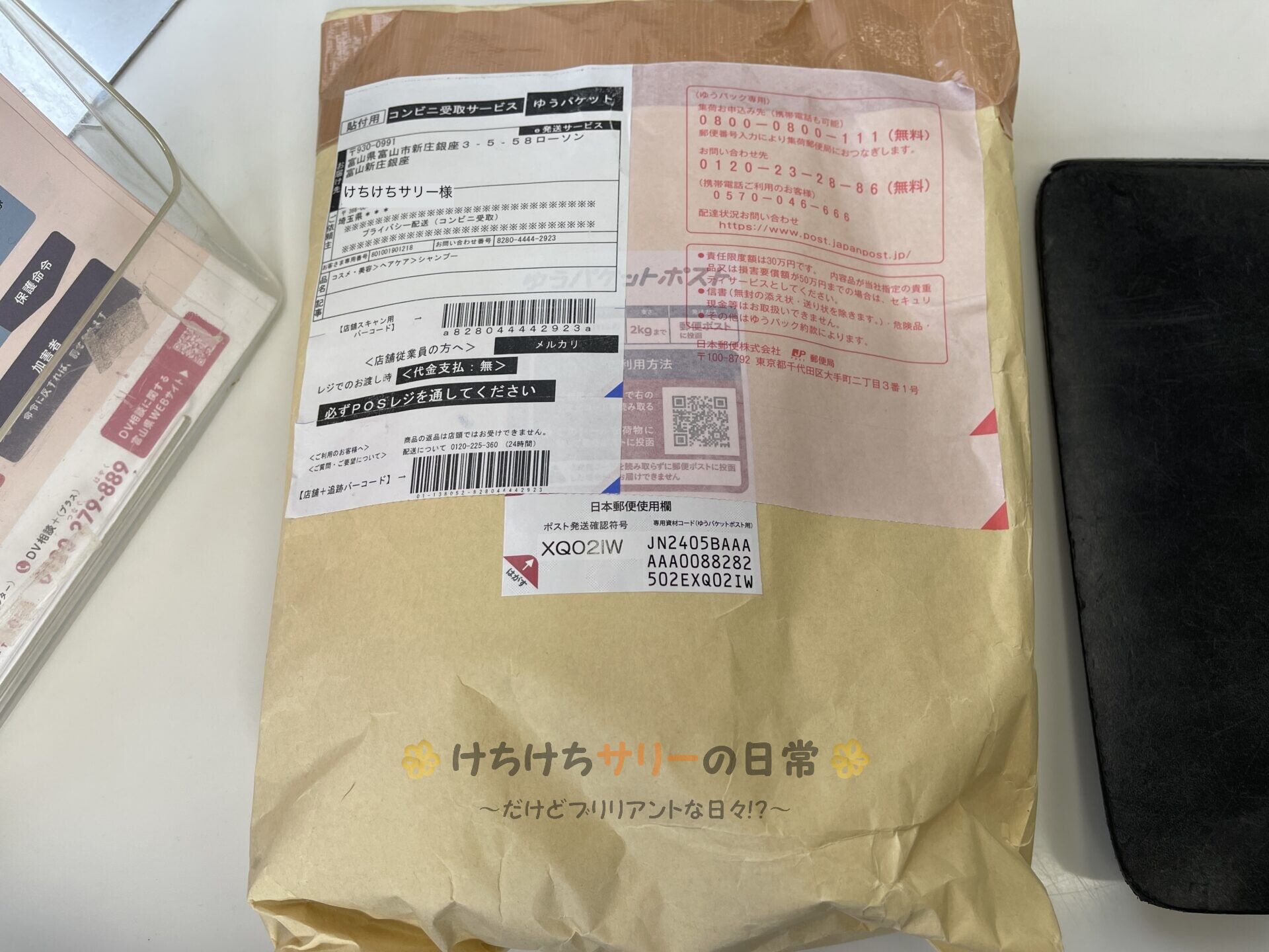 サリーが使っているシャンプー&コンディショナーの詰め替えが薬局で買うより送料込みでもメルカリで買った方が安かったからメルカリで買ってコンビニ受け取りにしておいたの。