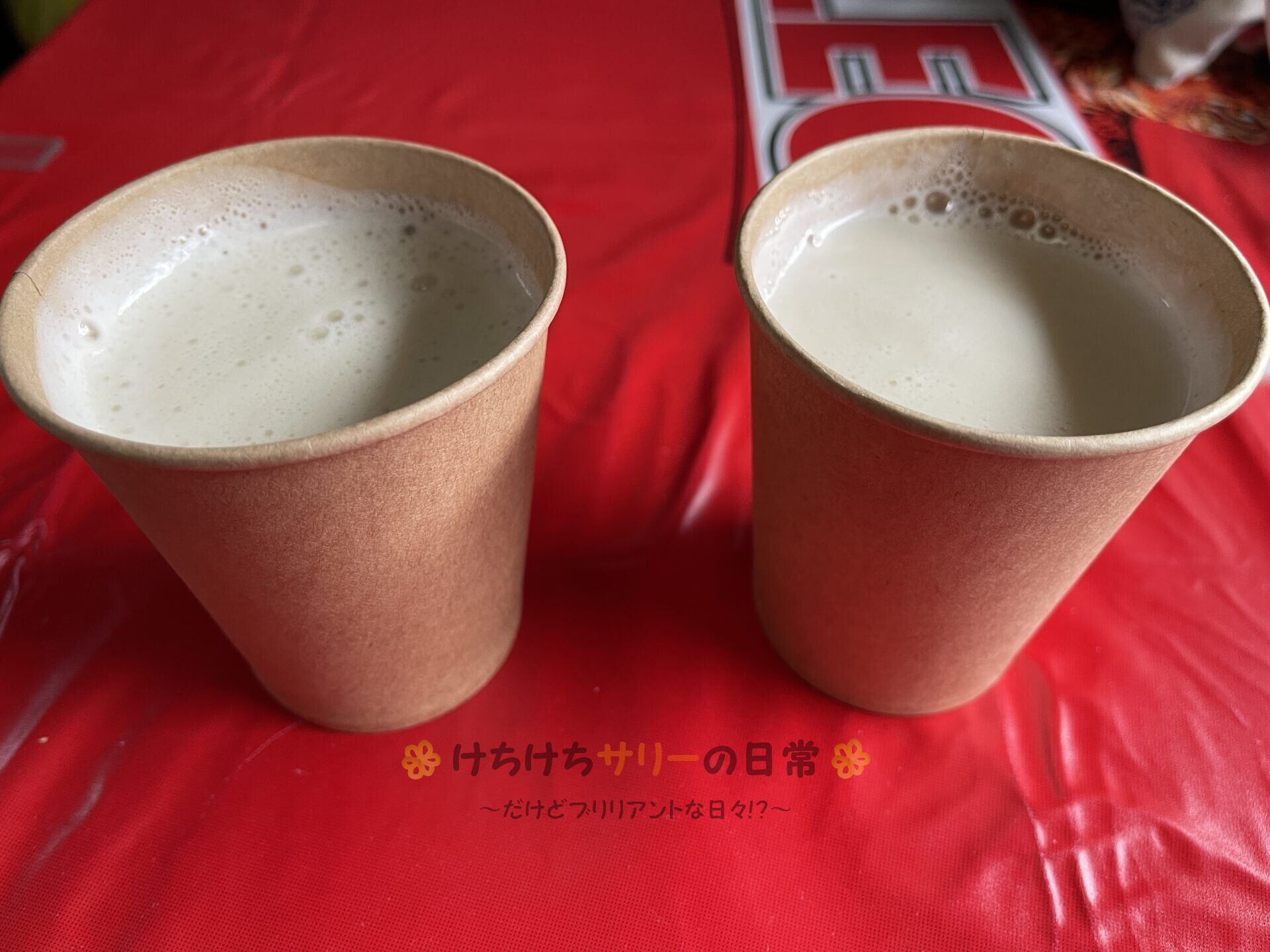 作っている間にまあちゃんがホット豆乳を差し入れしてくれた。