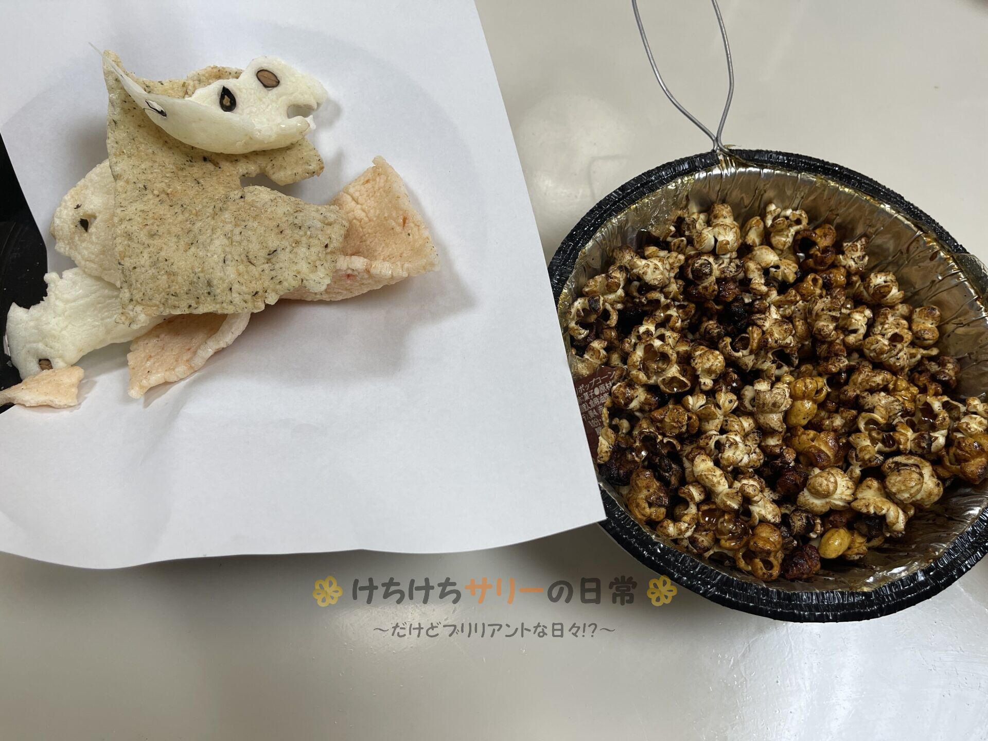 夕食後もお煎餅やポップコーンをいただく。 ポップコーンはまあちゃんが作ってくれたんだけど、お喋りに夢中になりすぎて焦げちゃった😂 でもマイペンライ👍