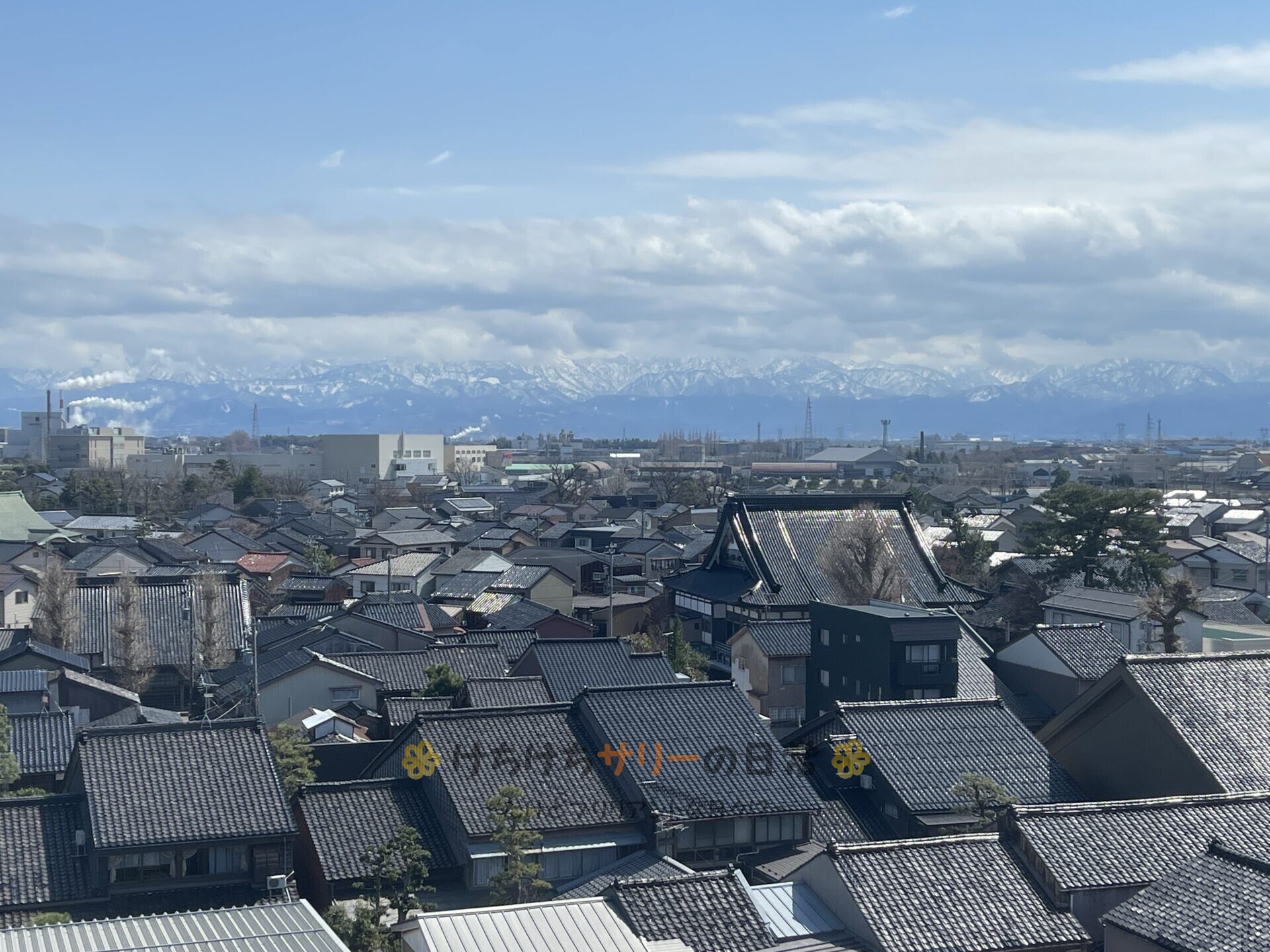 階段しか無いから上まで昇るのが大変だったけど、立山連峰を見渡す事ができてすごく良い場所✨ 屋根が黒色で揃ってて統一感があるね。