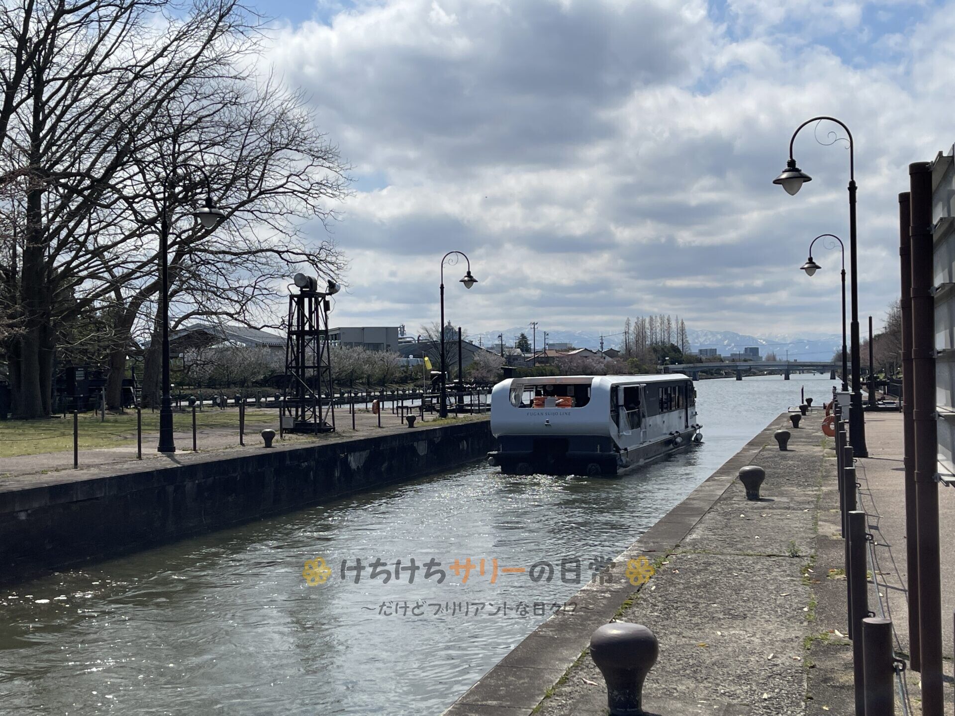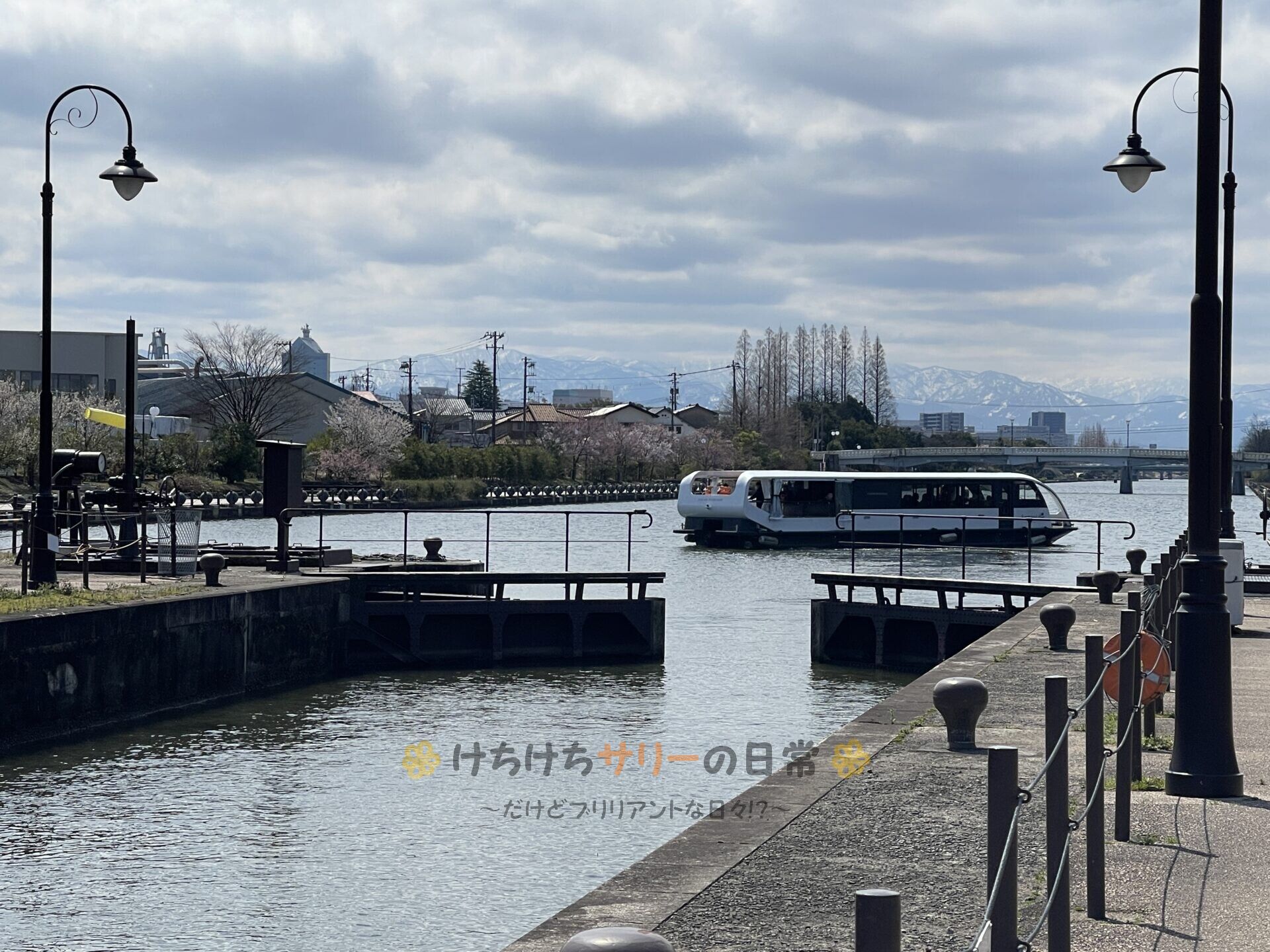 観光船がちょうどやって来て、水門が開いて水位が変わるのを目の前で見ることができた😊