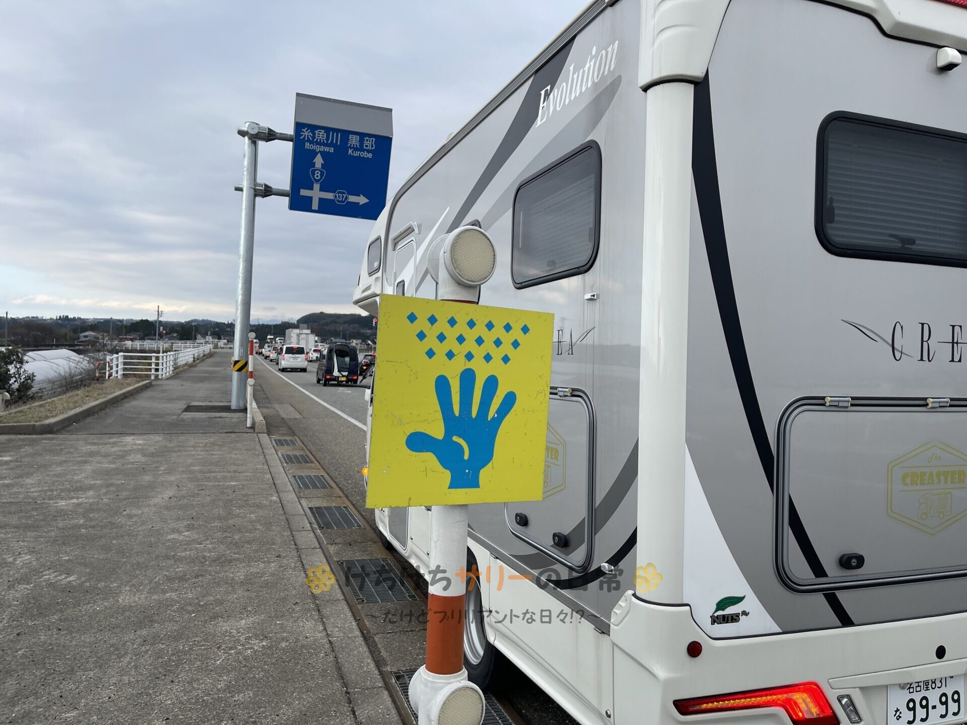 気になってGoogle先生に聞いてみたところ"富山県の道路で見かける「ぐー」と「ぱー」の標識は、凍結防止剤の散布区間を示す「グーパー標識」です。「ぱー」は散布開始地点、「ぐー」は散布終了地点を表し、橋や日陰など路面が凍結しやすい場所(橋の上、日陰、カーブ、坂道など)に設置され、冬期の安全運転を促す目的で使われています"との事。