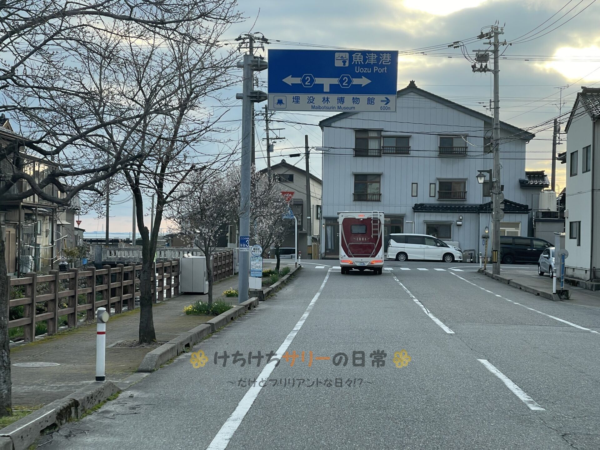 お友達の家を出発したサリー達はホタルイカをすくうスポットに移動する間に富山県の不思議な標識を見つけた。