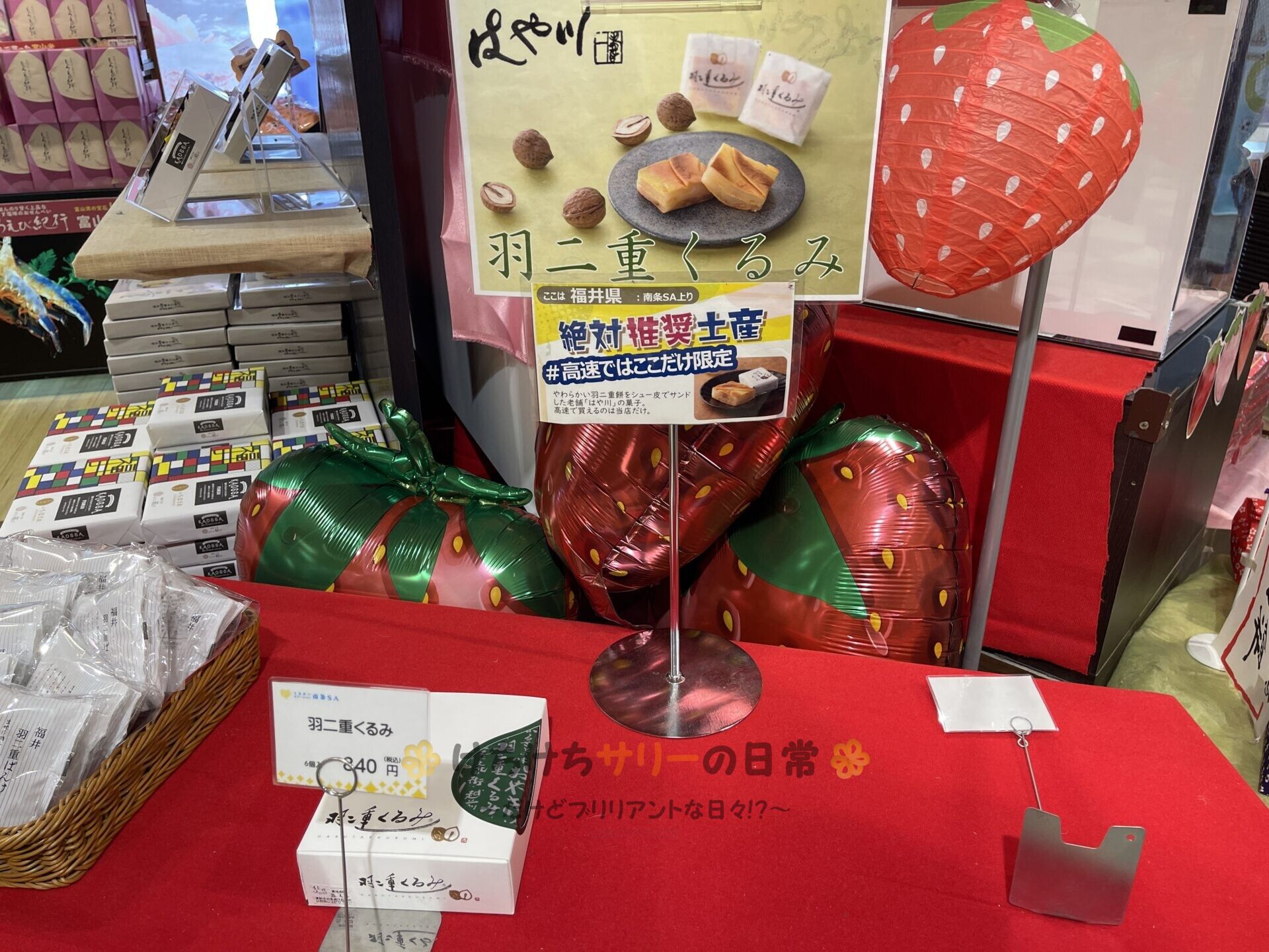 あぁ~!! サービスエリアに羽二重くるみが売ってるって看板に書いてあるよ~👀