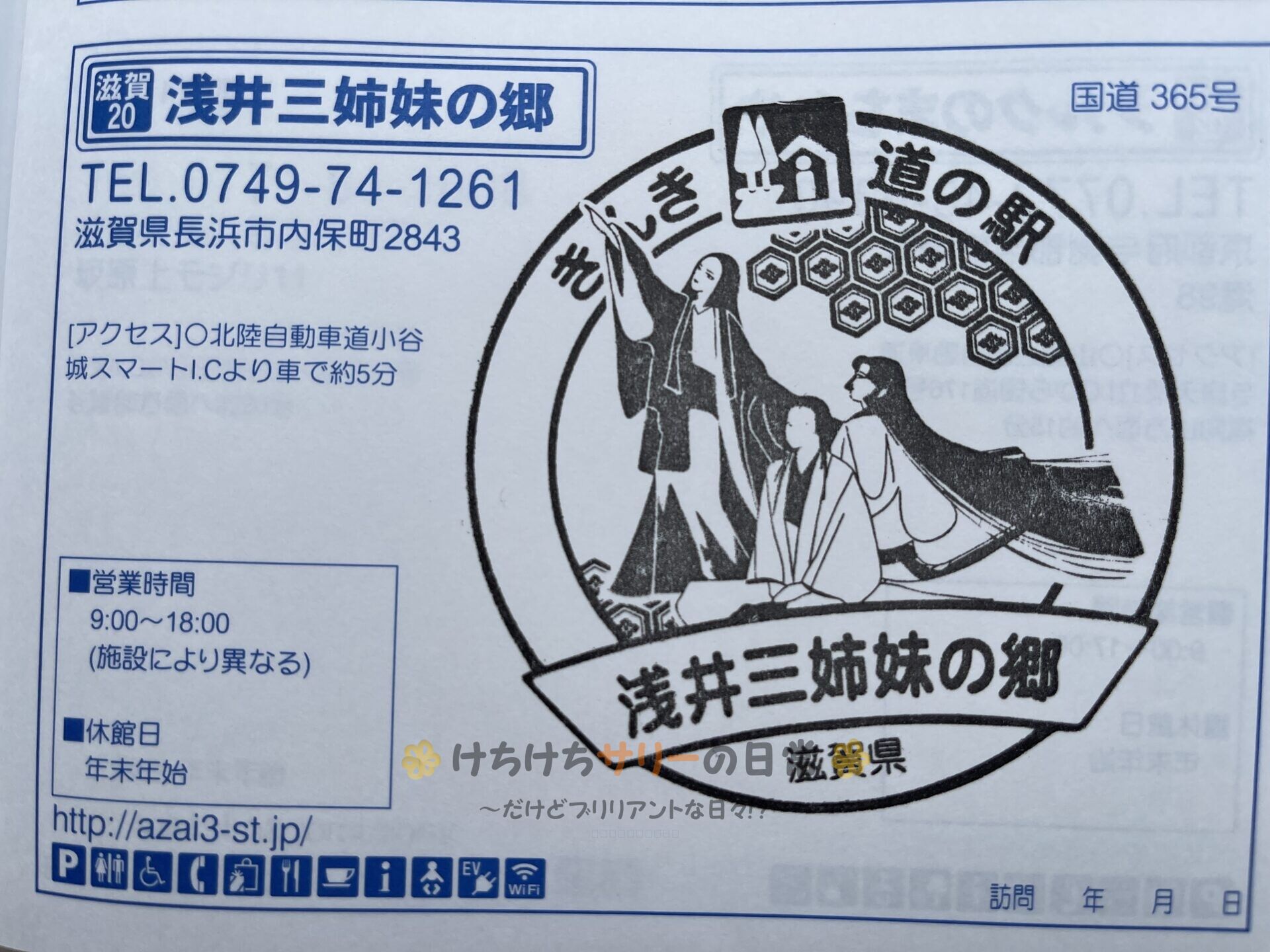スタンプをゲット! 道の駅の名前の通り、スタンプは浅井三姉妹がデザインされてたよ✨