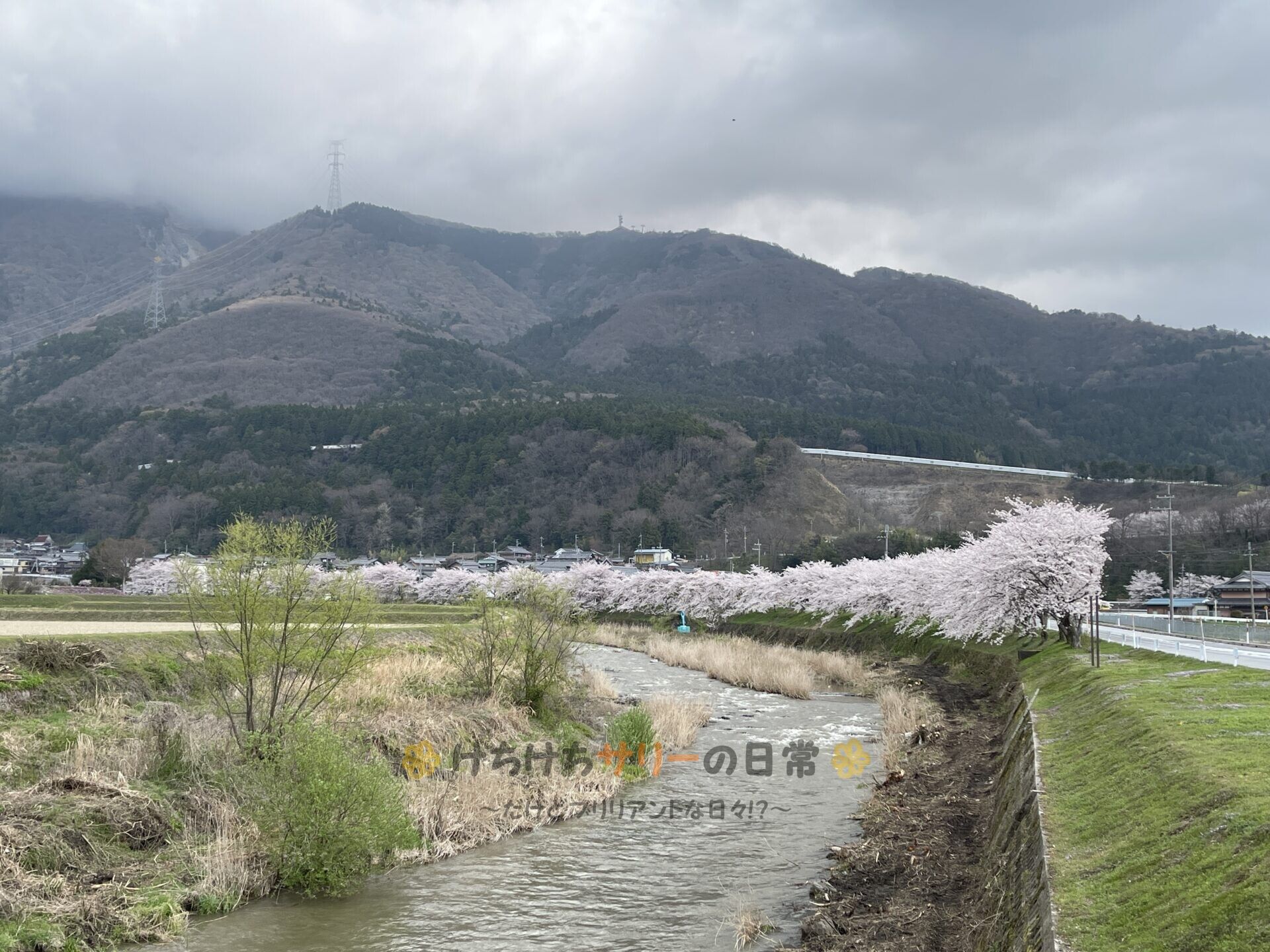 見て、この素敵な景色✨ 川沿いに桜がず~っと咲いてたよ🌸 この時期のドライブって最高😆