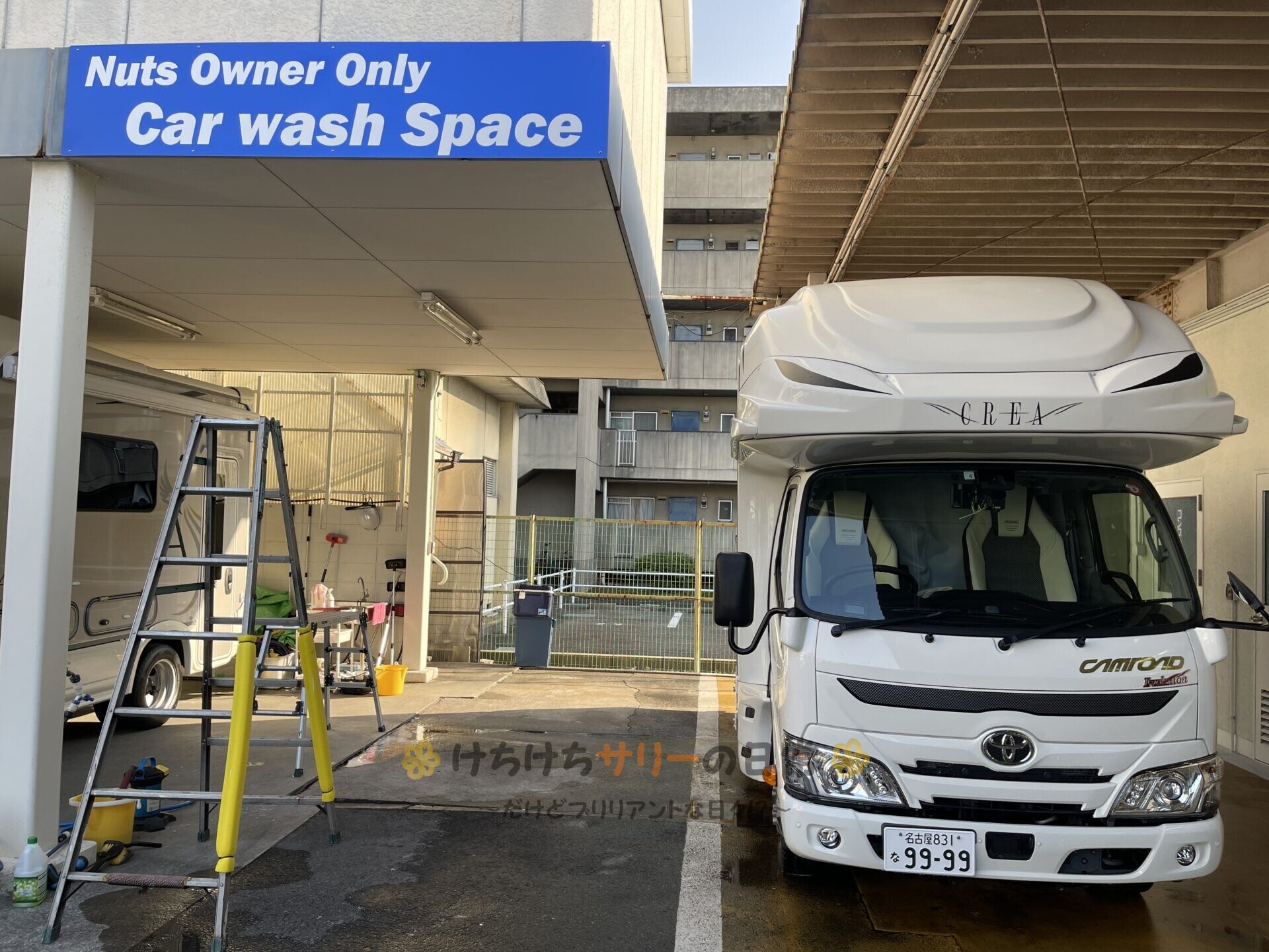 せっかくナッツRVに来たので洗車コーナーも予約していたサリー達。