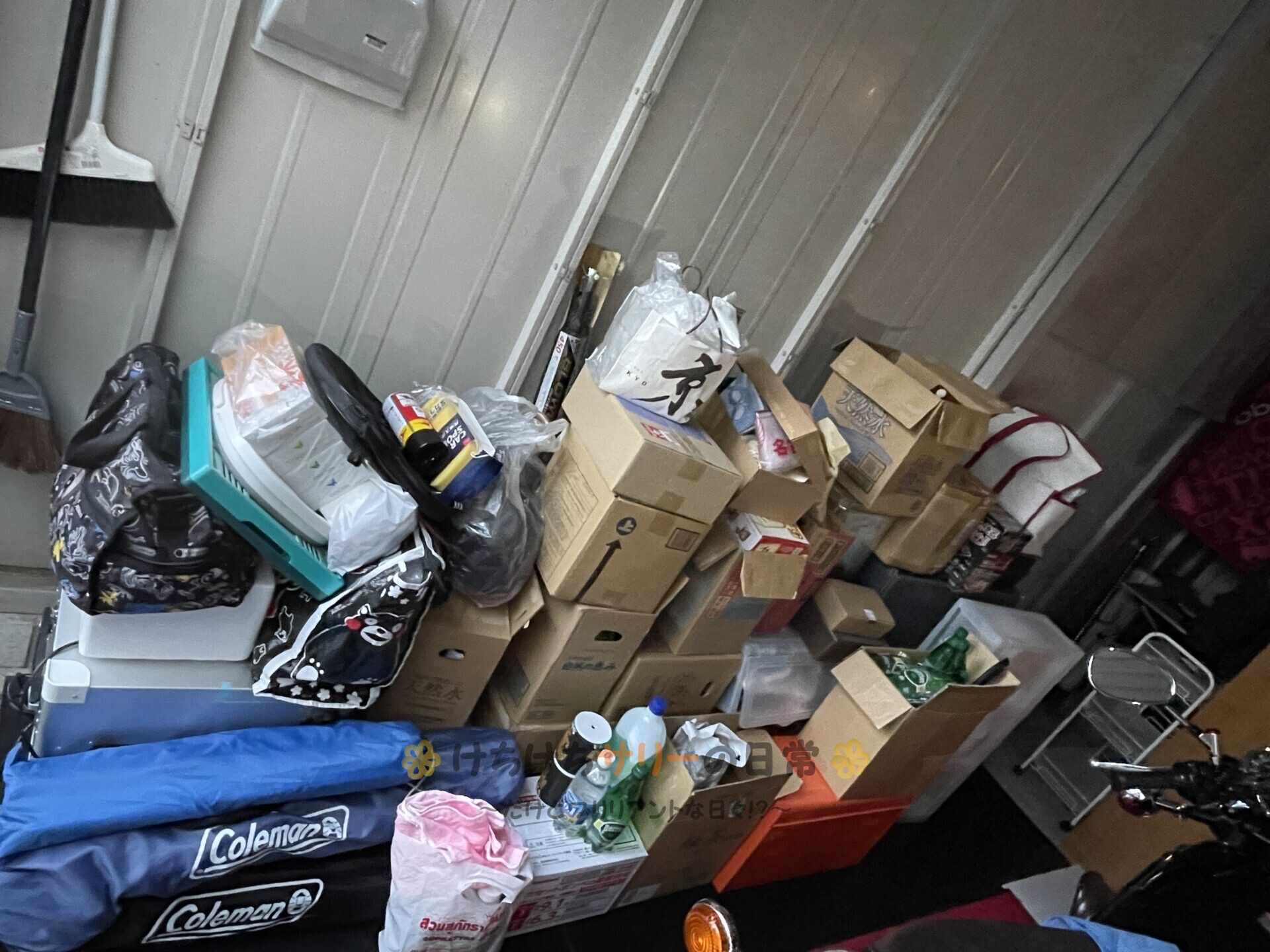 前の日に倉庫にかなりの荷物をおろしたけど、普段使っているティッシュとか小物類とかは全然降ろせてないから車検当日に降ろしやすいようにと整理整頓しつつ、片付けと掃除を進める。