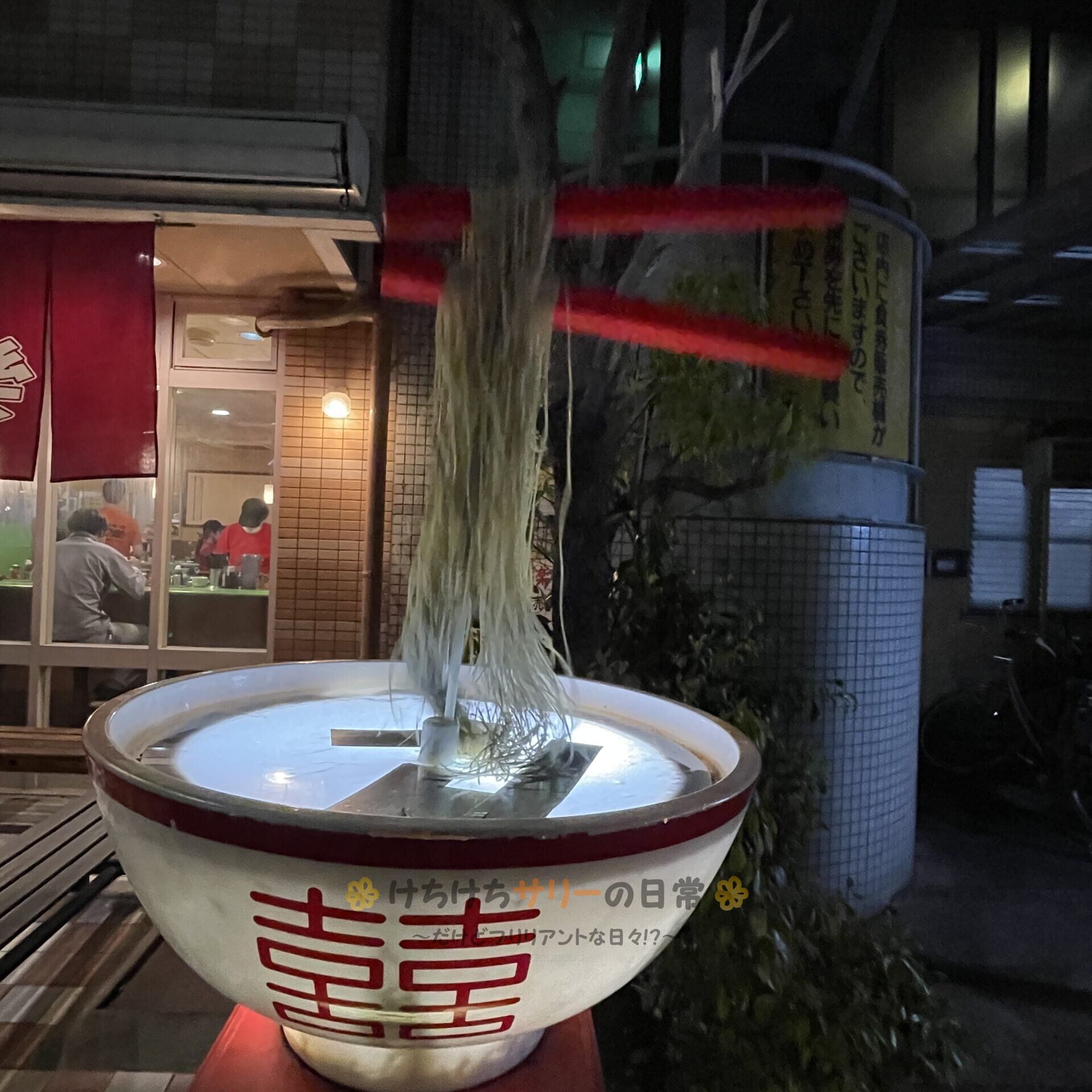 お店の前には昔来た時にはなかった大きなラーメンのオブジェがあったよ👇