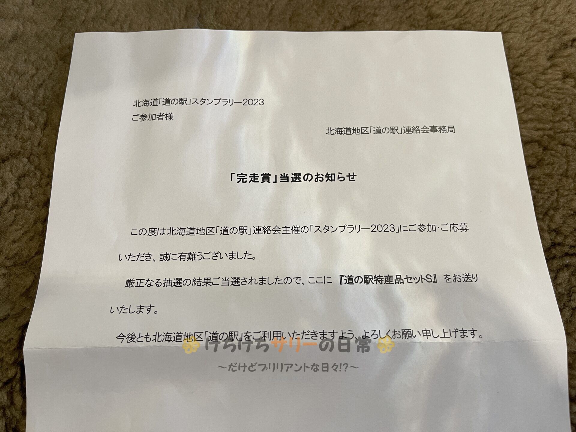 2023年の北海道「道の駅」スタンプラリーの完走賞に当選して商品が送られて来たよ~👏