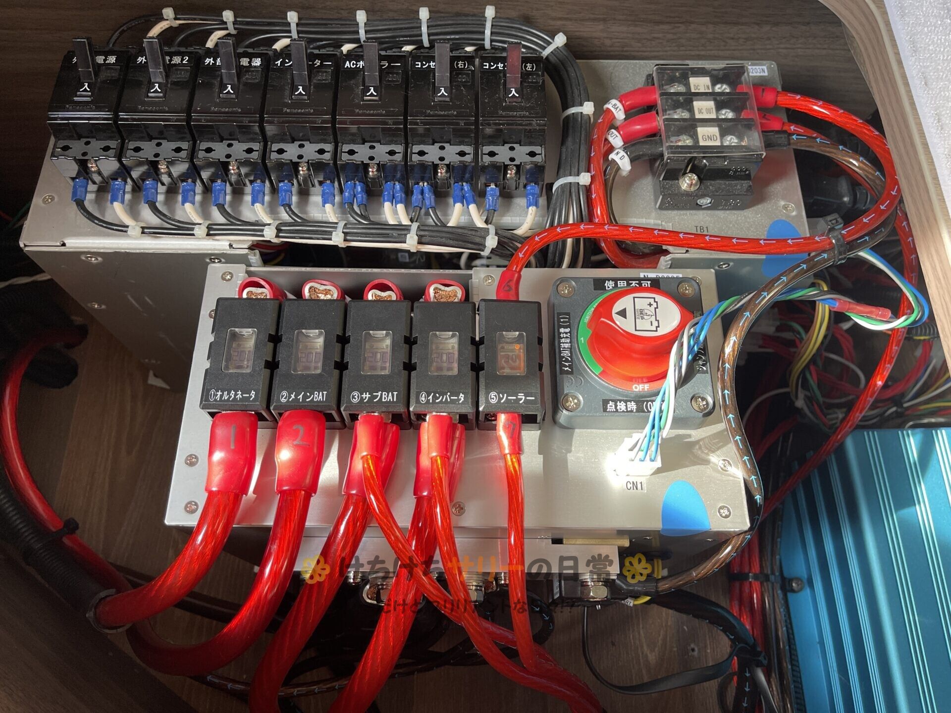 すぐにナッツRVに電話をして確認したら、スタッフの人が太陽光パネルからの入力コネクタをはめるのを忘れてたような記憶があるとの事。早速コネクターを刺してみたら、ちゃんと太陽光発電で電気が入力されるようになったよ😆