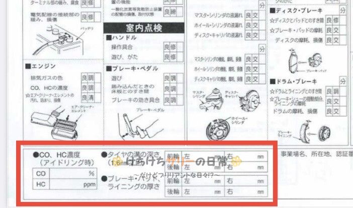 ほとんどの項目は自分達でチェックできるんだけど、ブレーキパッド、ライニングの厚さは聞かないと自分では分からないからね😐