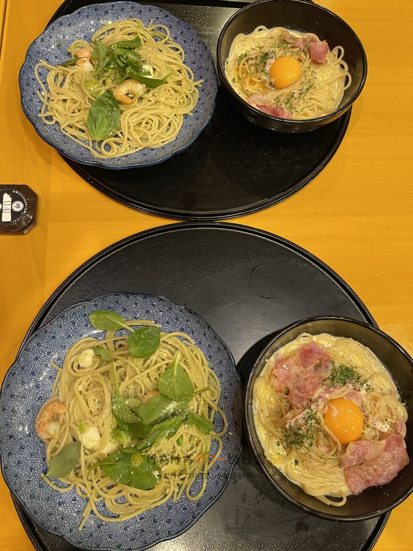 この日は二人とも「ハーフ&ハーフのCセット(カマンベールチーズとカリカリベーコンのカルボナーラ+海老とアボカドとモッツァレラチーズのジェノベーゼ):1,580円」にしたよ!
