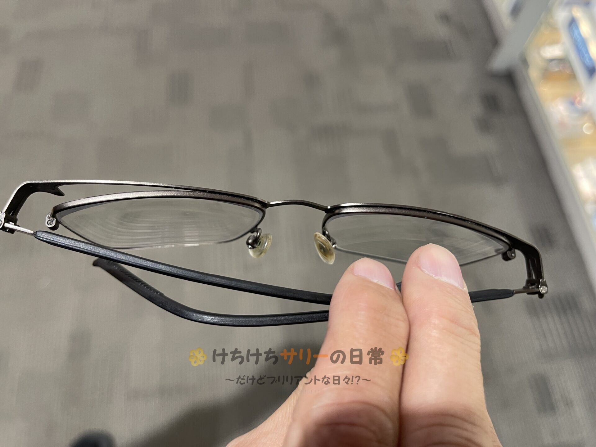 これ見て👇 相方の眼鏡の左側のフレームが突然ピヨーンとはがれちゃったの😱