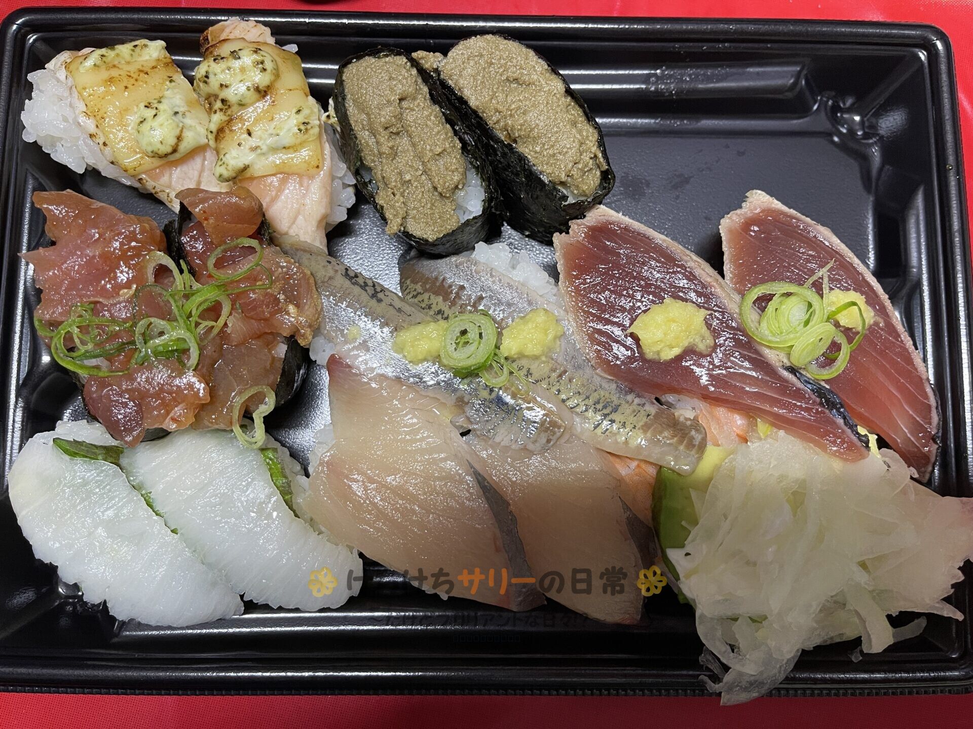 ⚫︎サーモン、⚫︎焼きとろサーモン、⚫︎えんがわ、⚫︎活〆はまち