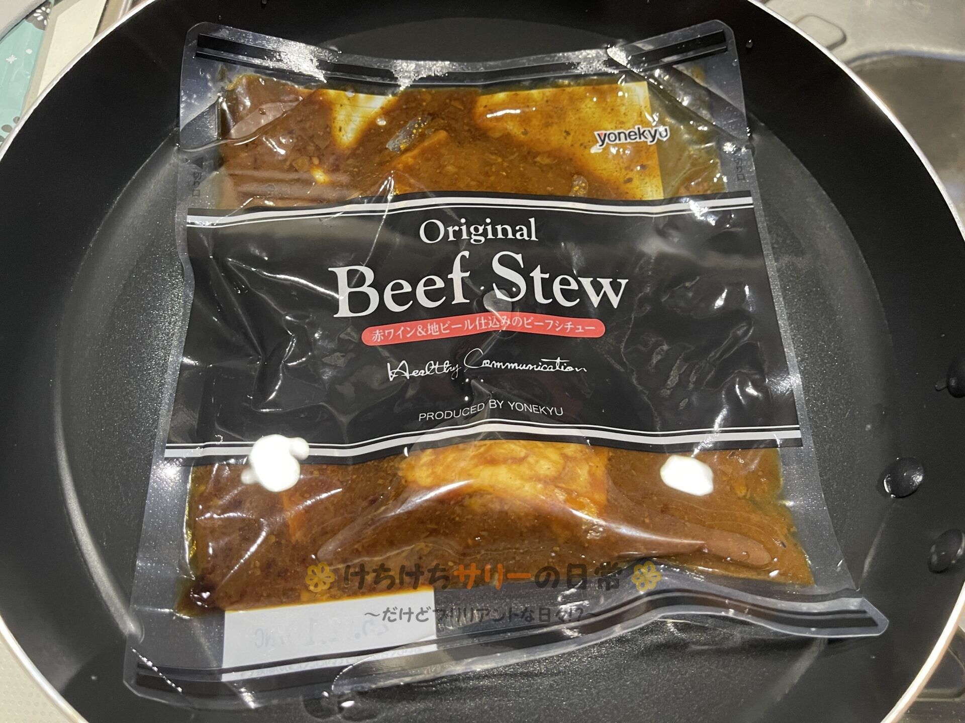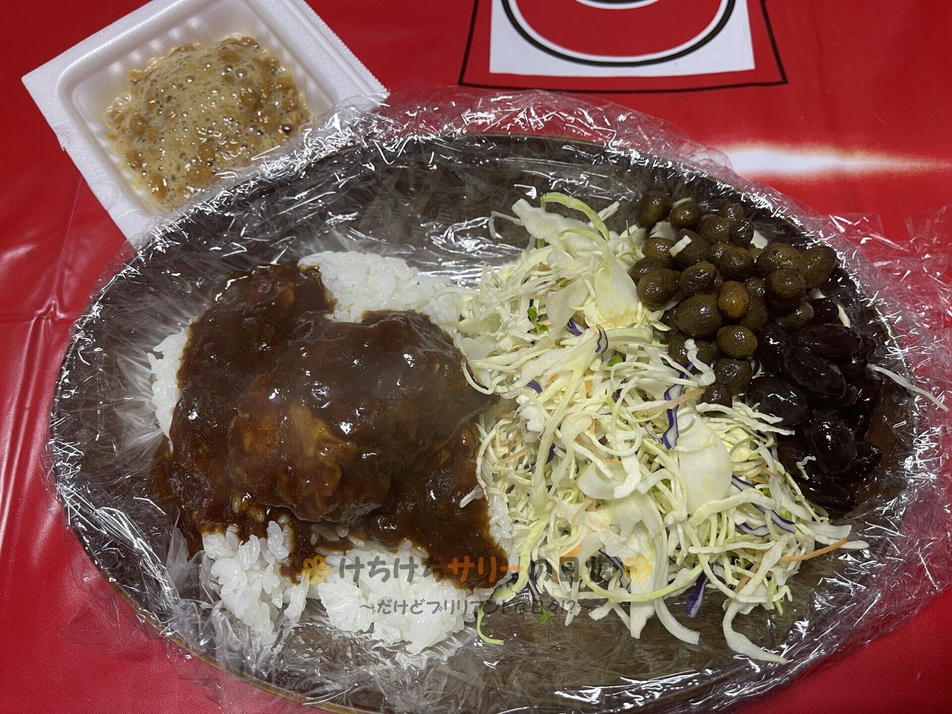 この日の夕ご飯は「ビーフシチューライス」、「サラダ」、「むかごの煮物」、「黒豆」、「納豆」だよ。