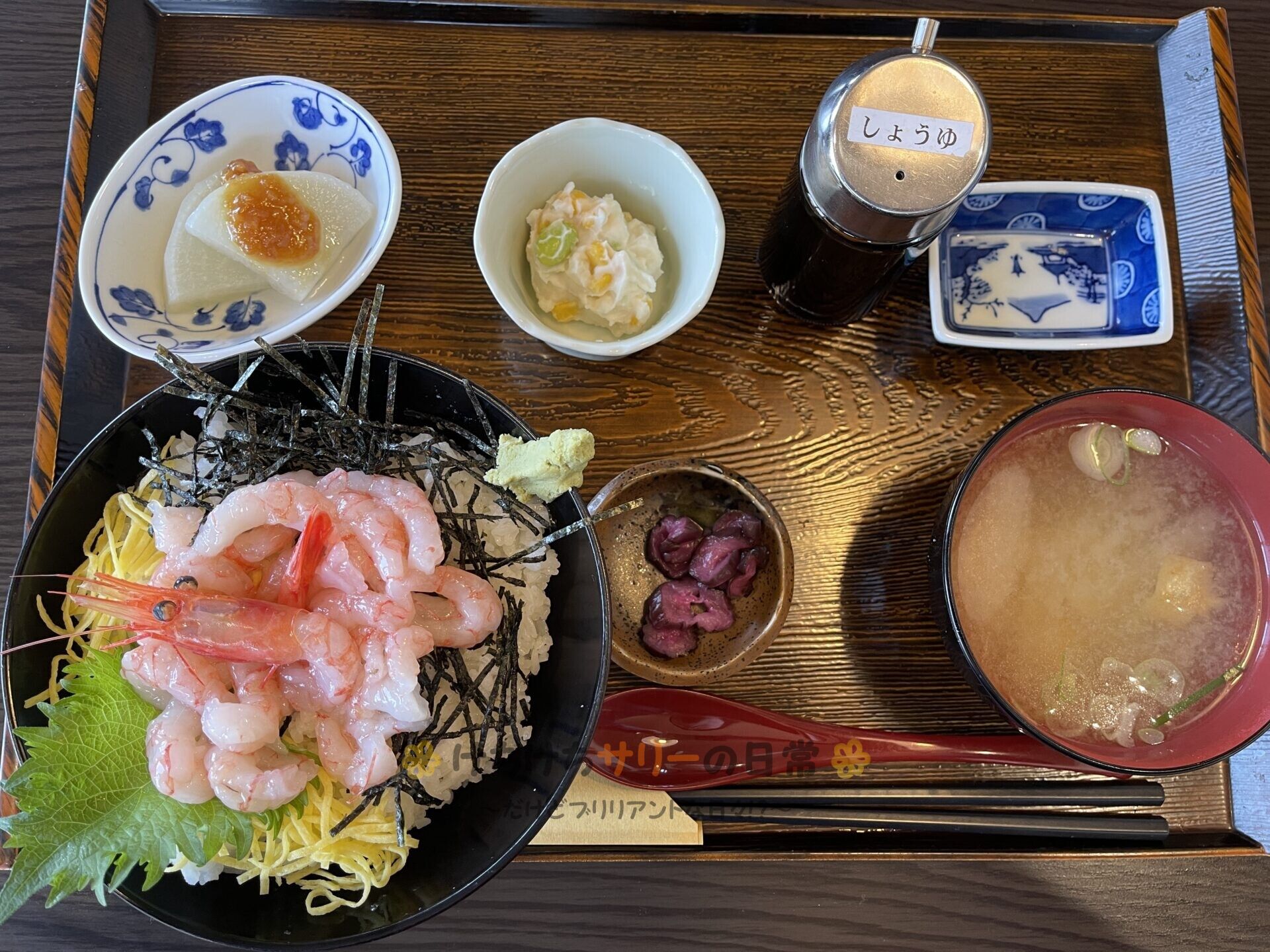 サリーは「甘エビむき身丼:1,300円」を注文。 大きな身の甘エビがたっぷりのってて幸せ~😍