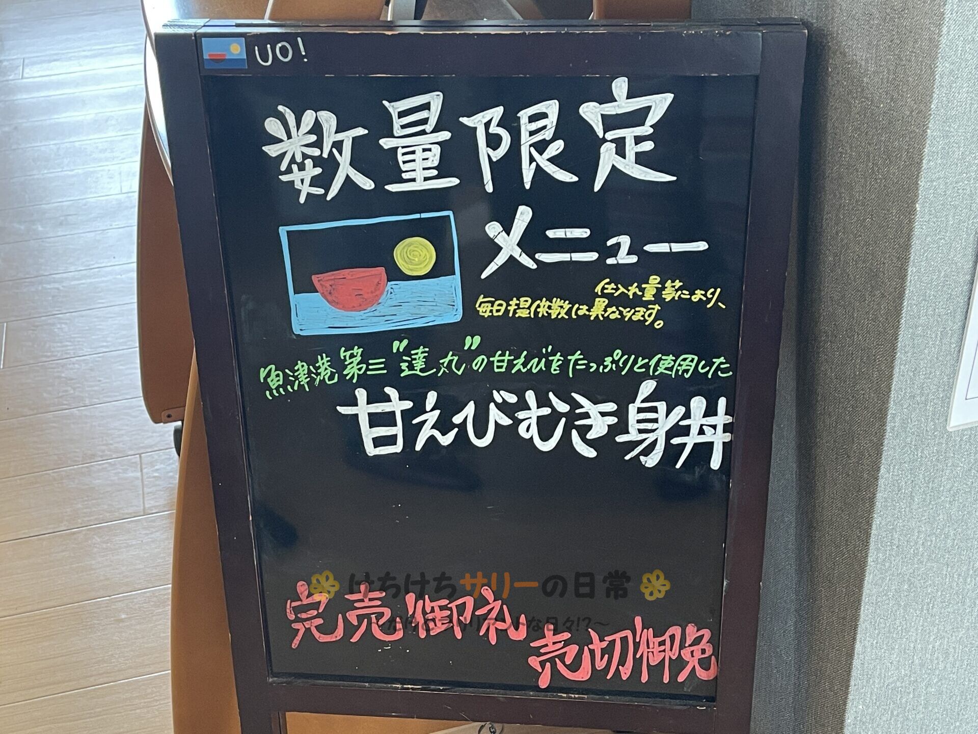 サリー達は早く来たのは、口コミで評価が高かった「甘えびむき身丼」を食べたかったから!! 数量限定ですぐに売り切れちゃうみたい😔