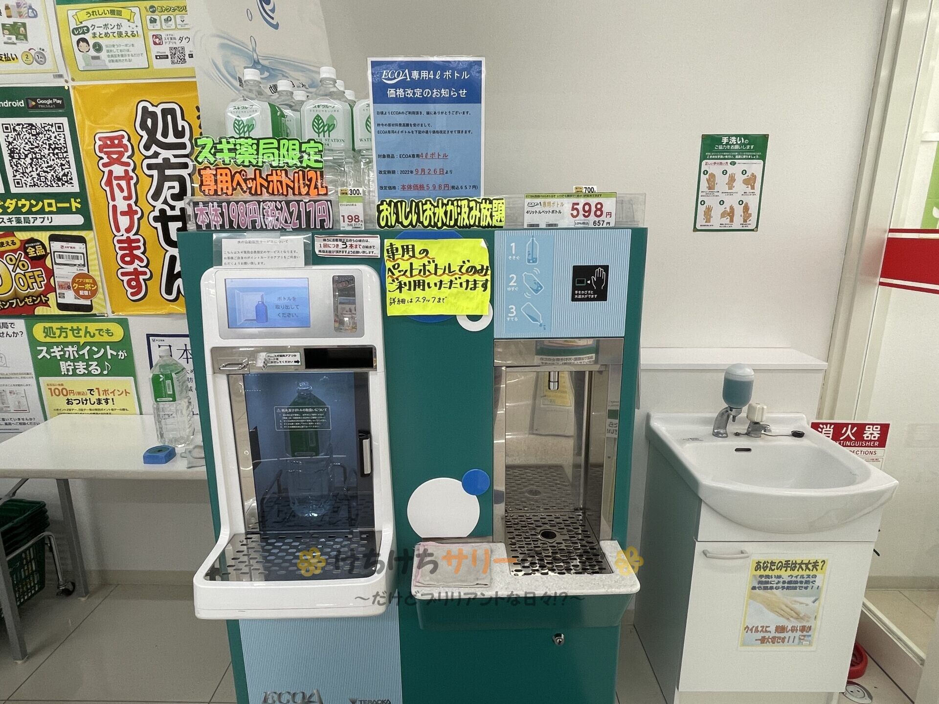 無料で給水&50%OFFのシールを貼られた食材が売っていたので104円分お買い物もしたよ。