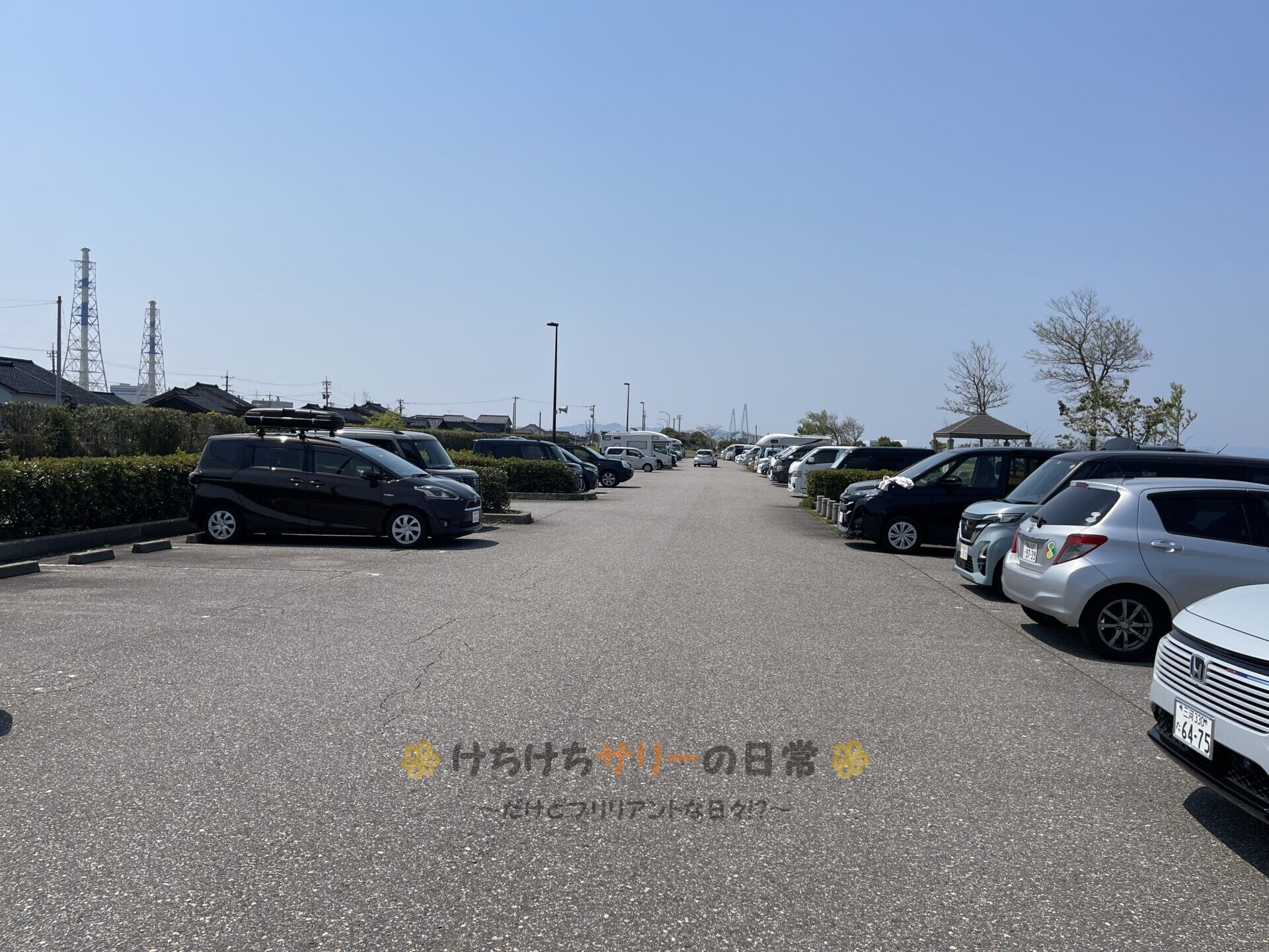 たくさんの車に圧倒されて、お昼ご飯の前にどの辺りですくうのが良いかなと気合を入れて下見をする事にしたサリーと相方。夜の海にいきなり近づくのは危ないから昼間の下見も重要なの☝
