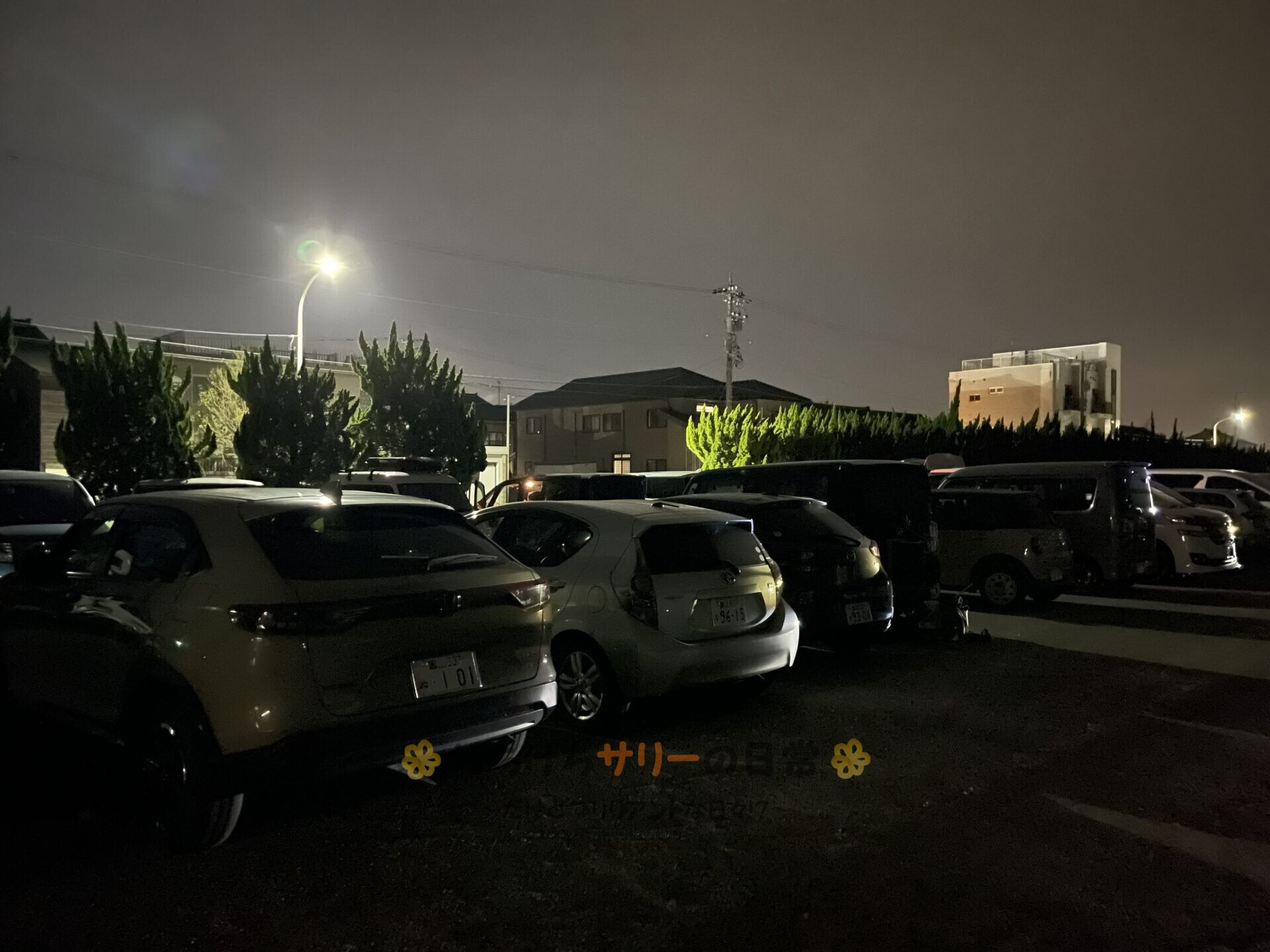 0:00に目覚ましで起床。 駐車場は満車🈵