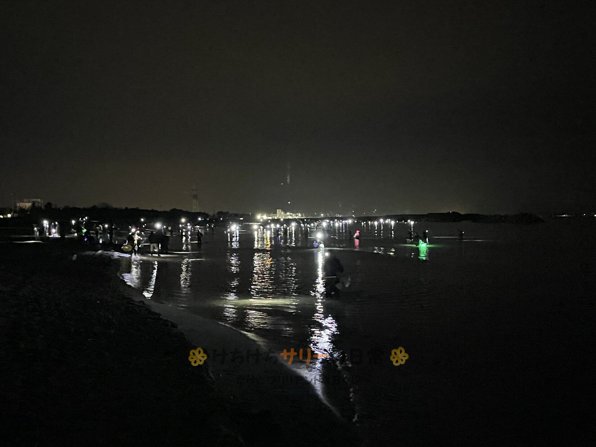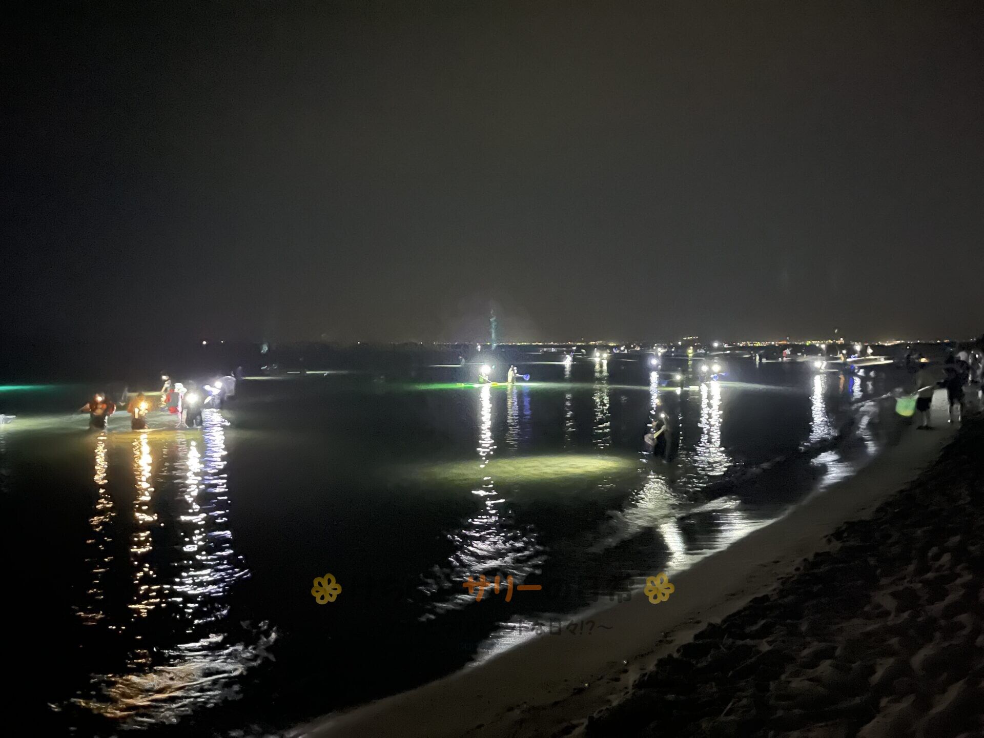 キャンピングカーの窓から様子を伺ってたら、深夜0時頃からみんなの動きが活発になって来たのでサリー達もホタルイカすくいをする事にしたよ。