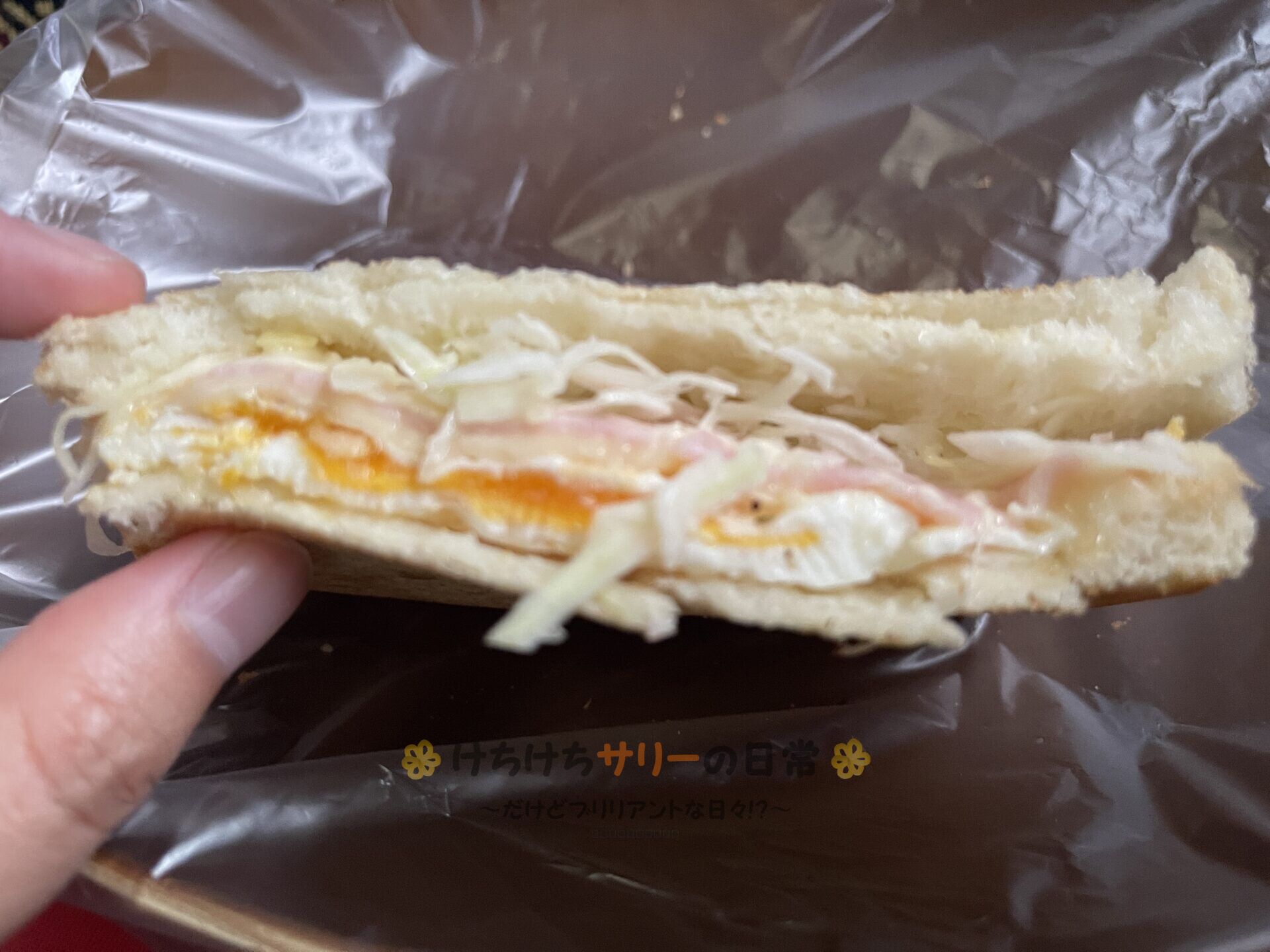 そうそう!! 今までは玉子は焼かずに生のままパンの上にのせて焼いてたんだけど、キャンピングカー生活も3年目に入ると車内でのフライパン調理もお手のものになったから焼いてから作ったよ。
