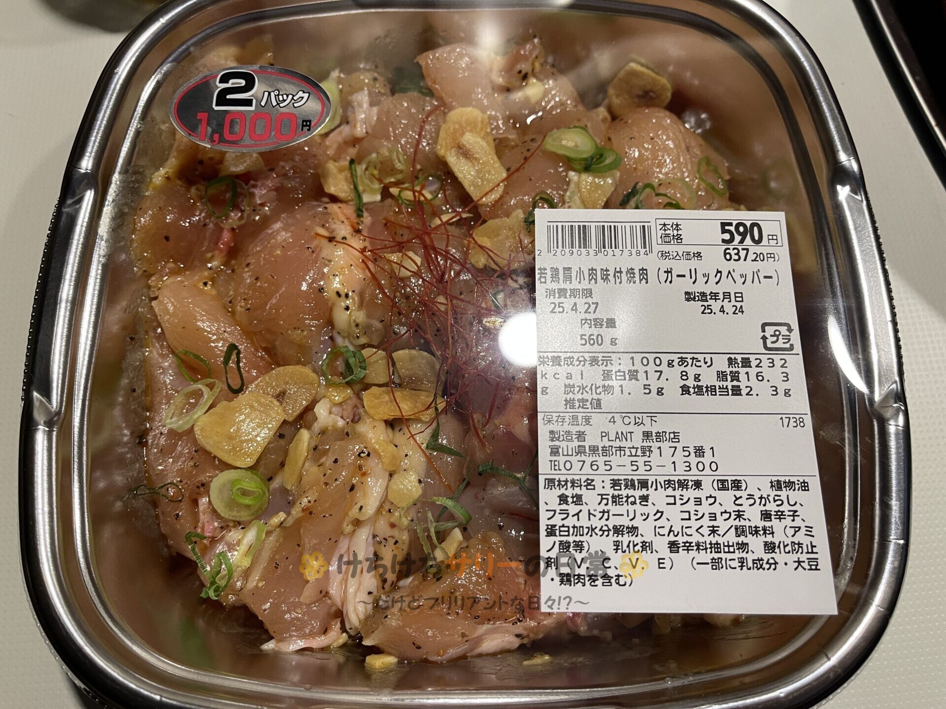 夕ご飯を食べるよ!! この日の夕ご飯は昼間にスーパーで購入した2パックで1,000円のこれを炒めるよ👇