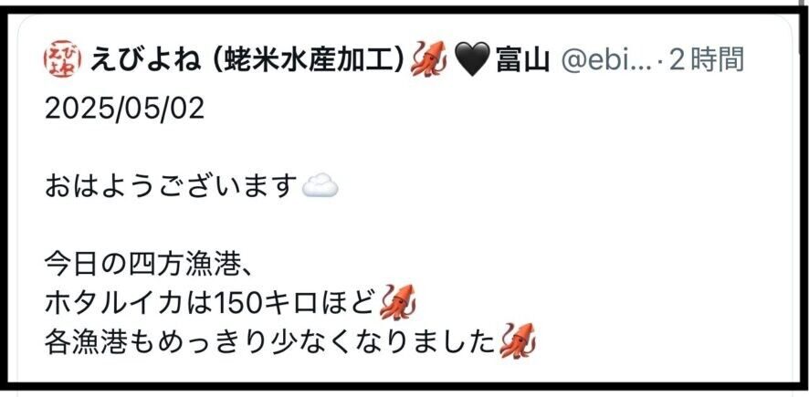 だってさ、サリー達、ホタルイカが大好きでホタルイカをたっぷり食べるために富山県にやって来たんだよ。 ここまではホタルイカが大量にすくえるかもしれないっていう夢を見てたからスーパーで半額のホタルイカを見つけても決して手を出さなかったけど、2025シーズンのホタルイカすくいをやめた今、半額のホタルイカを買わない手は無いでしょ😑