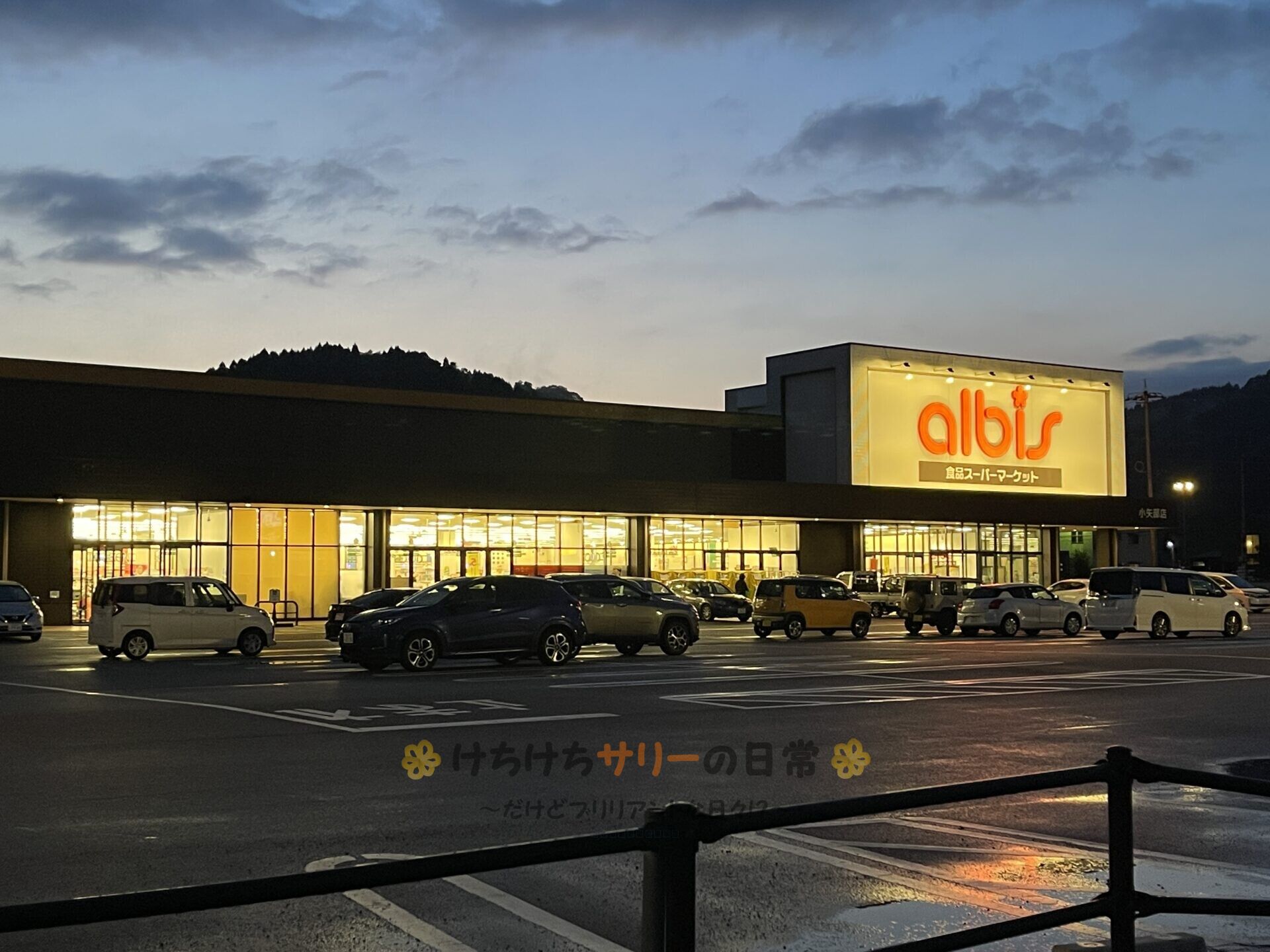 夕方まで頑張ったら、キリが良い所で仕事をやめて昼前に行った道の駅の隣の「アルビス 小矢部店」に戻って、夕ご飯に良い物が無いかを再び探しに来たよ。