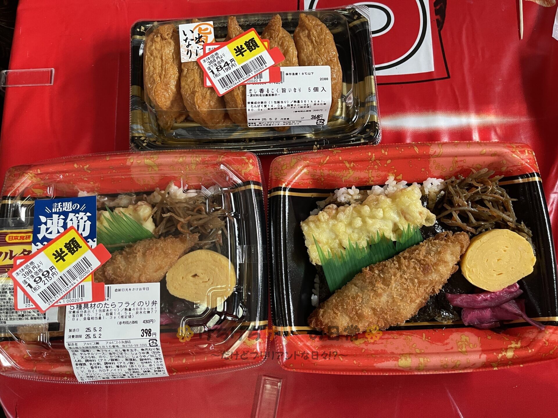 ヤッタ~😆 50%引きのシールが貼られた弁当を発見🧐